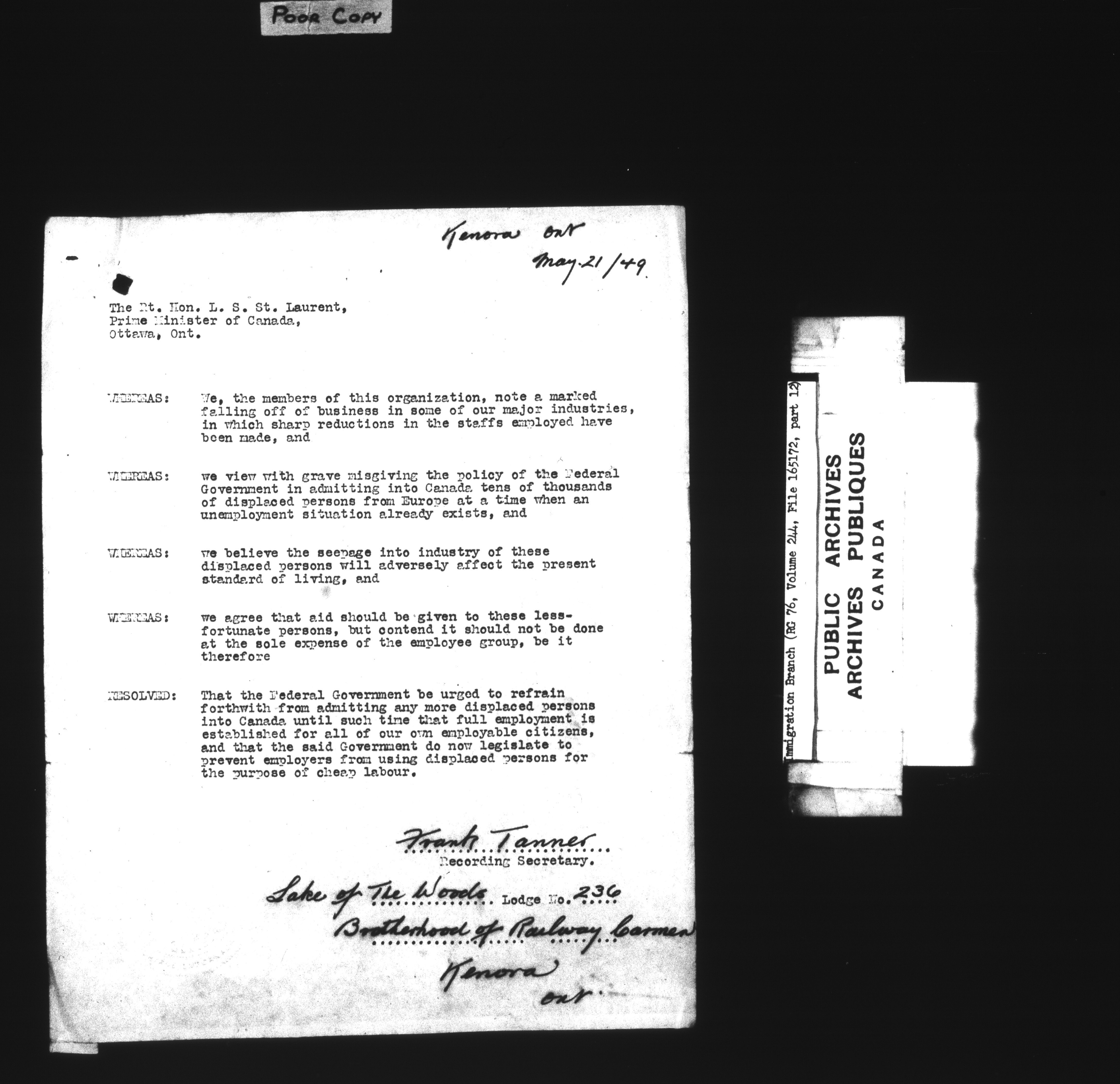 Subject, policy and case files in the First Central Registry series of the Immigration Program, 1892-1950 - 7393