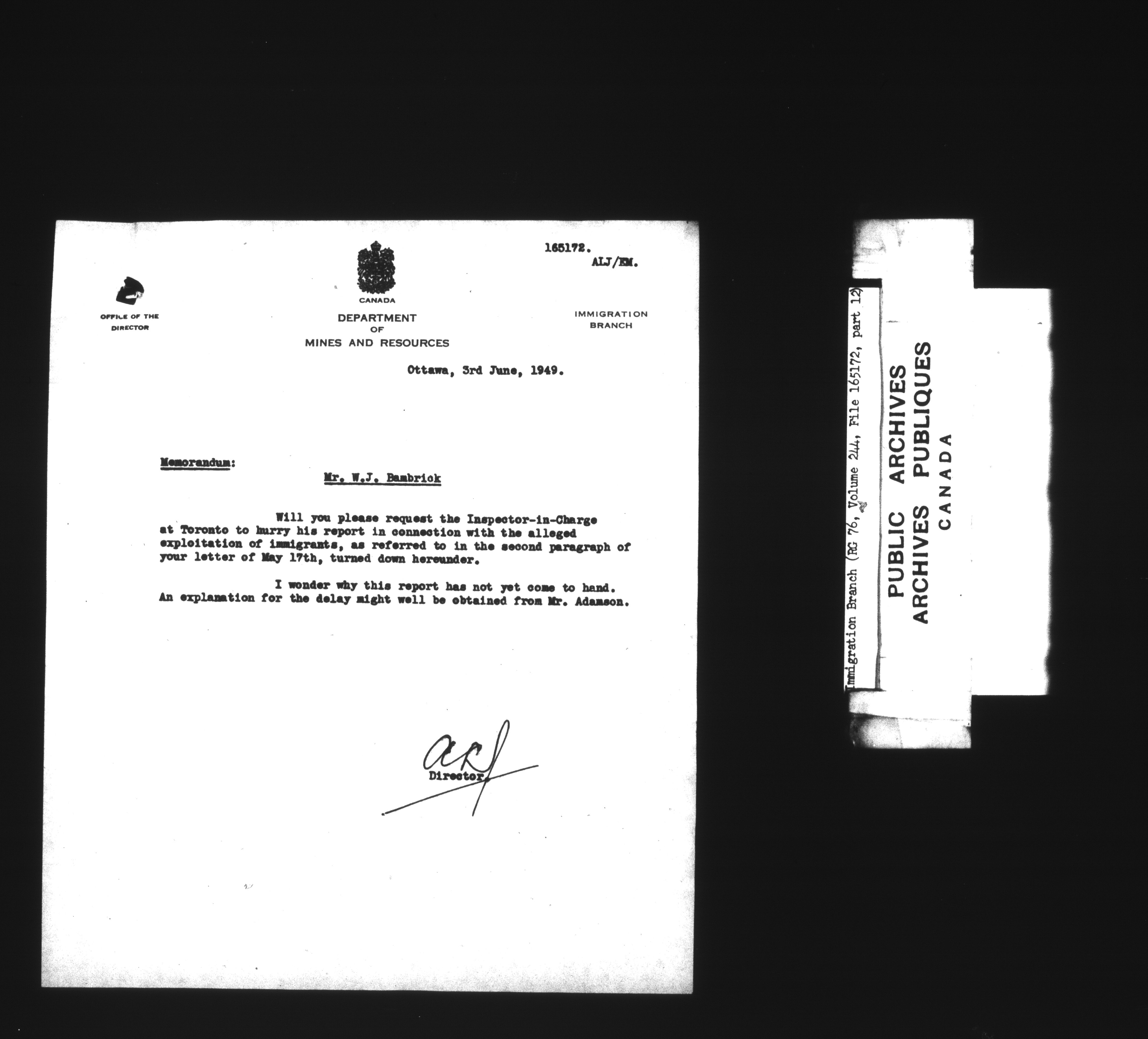 Subject, policy and case files in the First Central Registry series of the Immigration Program, 1892-1950 - 7393