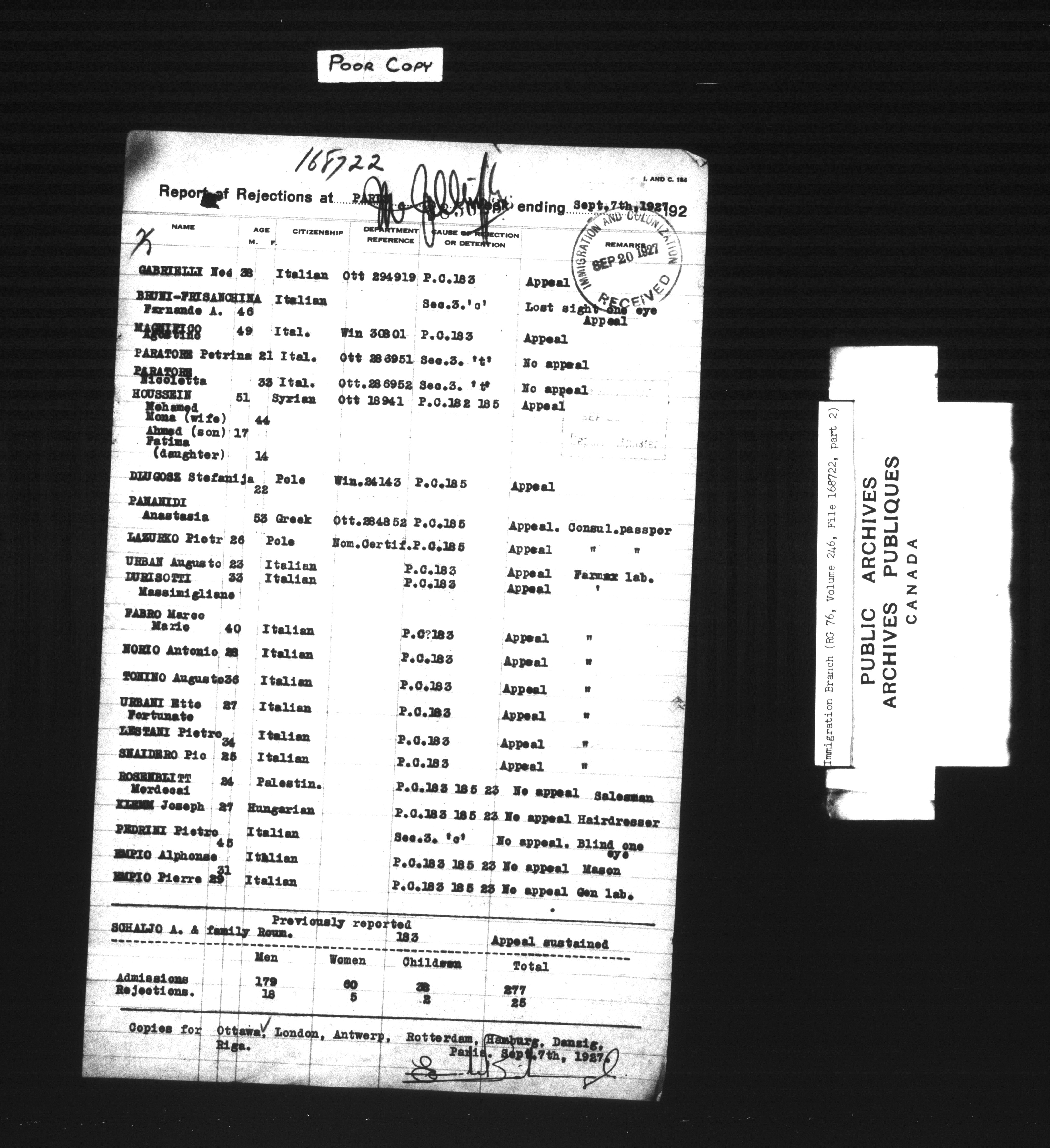 Subject, policy and case files in the First Central Registry series of the Immigration Program, 1892-1950 - 7394