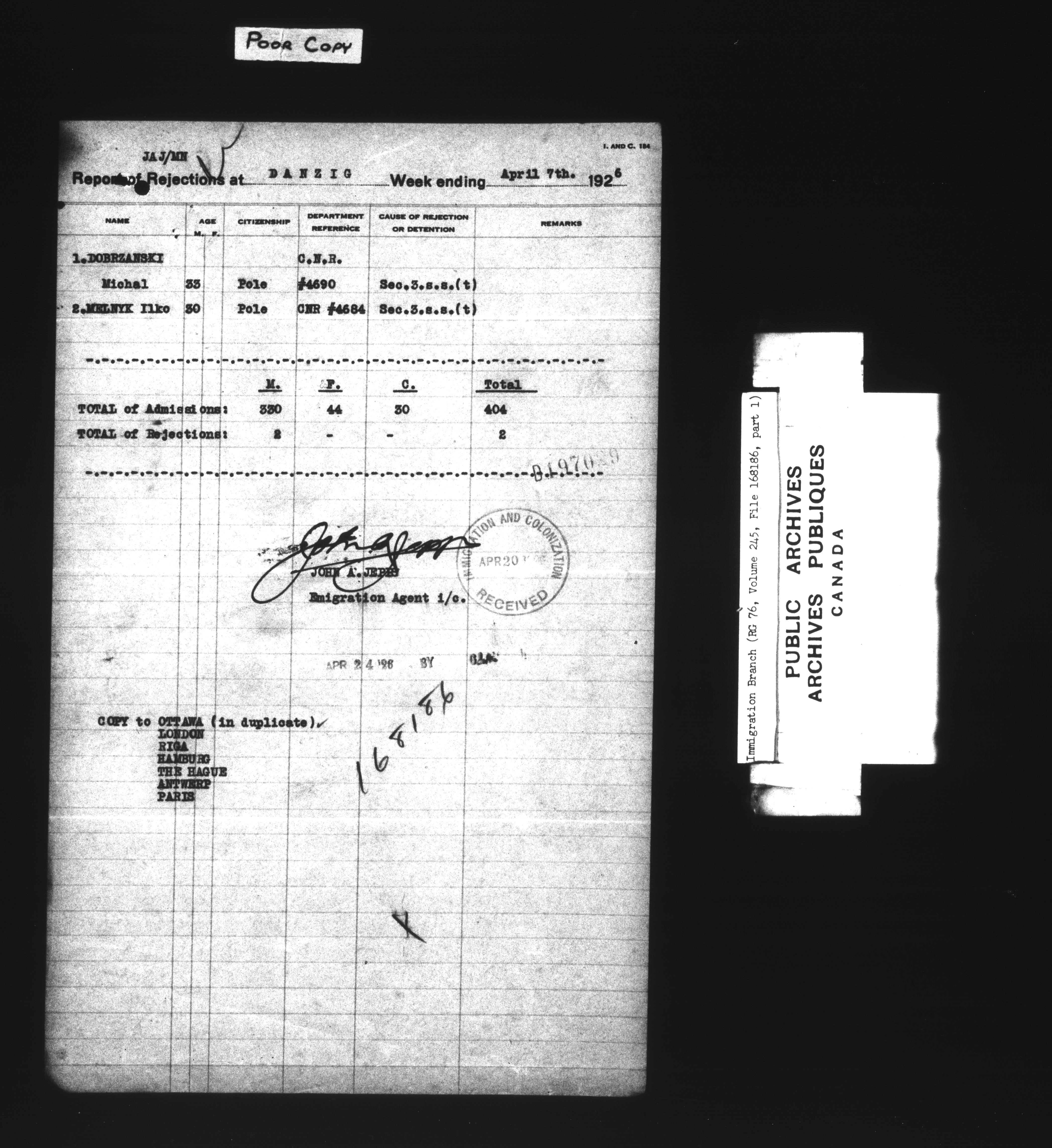 Subject, policy and case files in the First Central Registry series of the Immigration Program, 1892-1950 - 7394