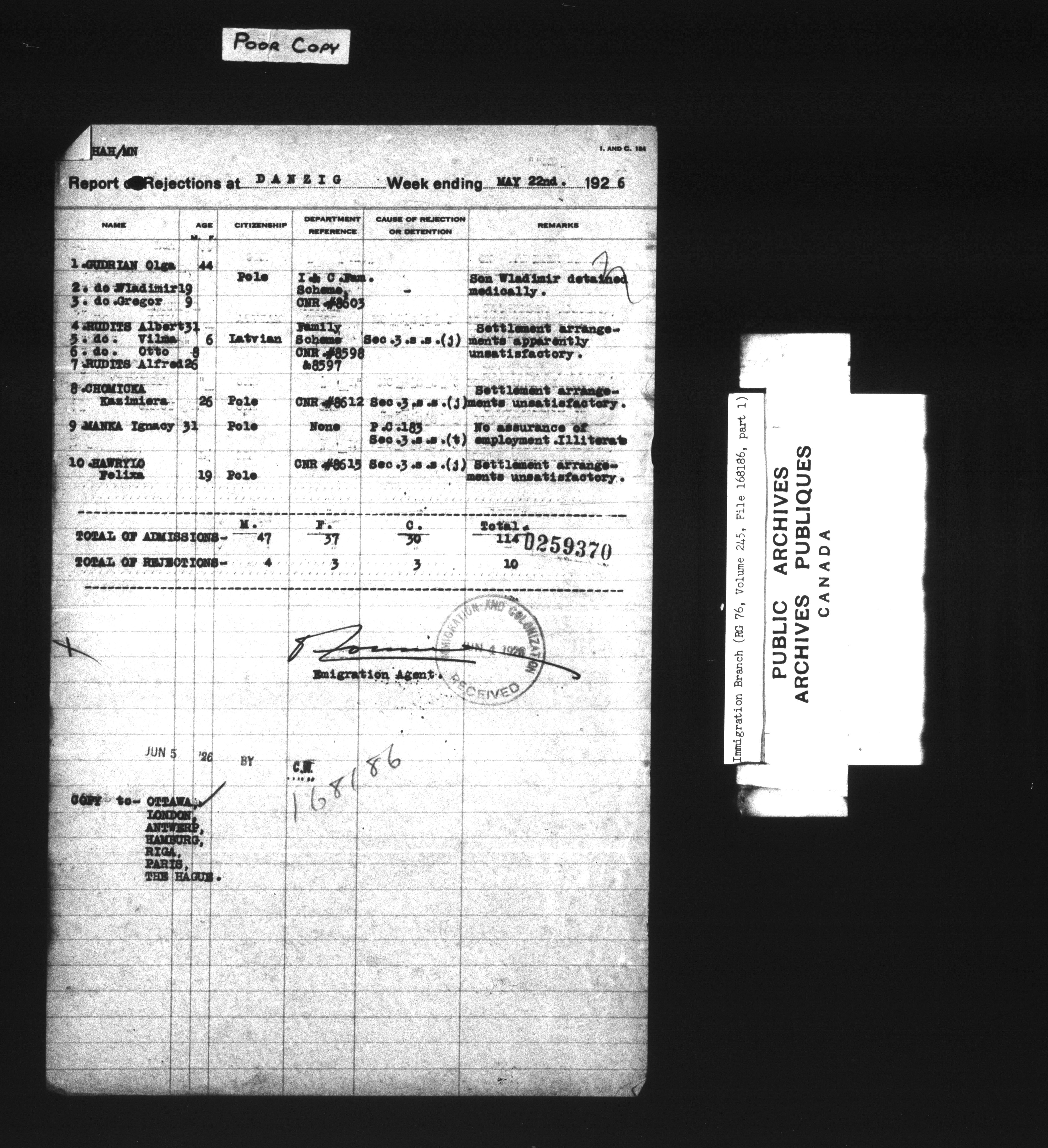 Subject, policy and case files in the First Central Registry series of the Immigration Program, 1892-1950 - 7394