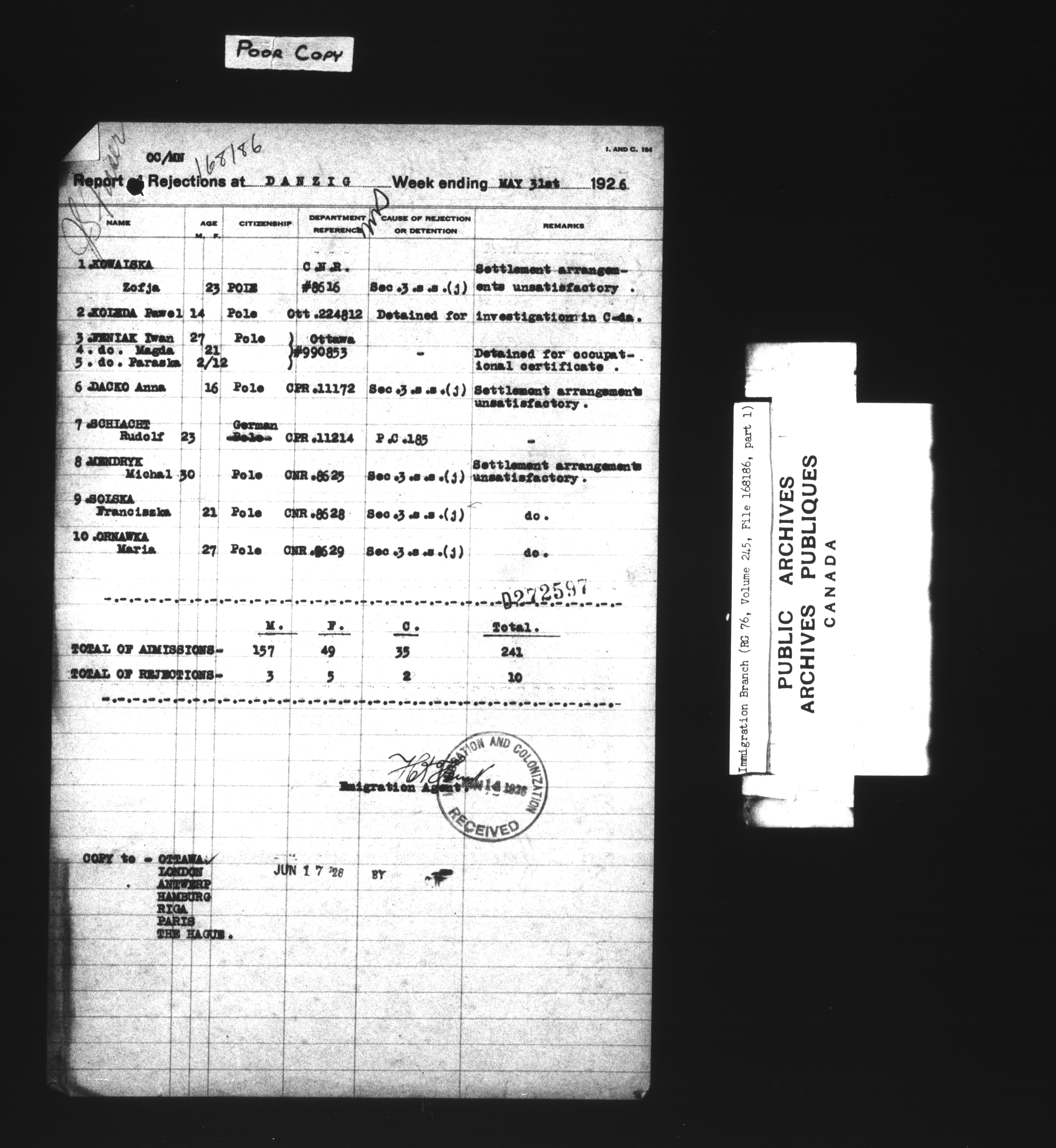 Subject, policy and case files in the First Central Registry series of the Immigration Program, 1892-1950 - 7394