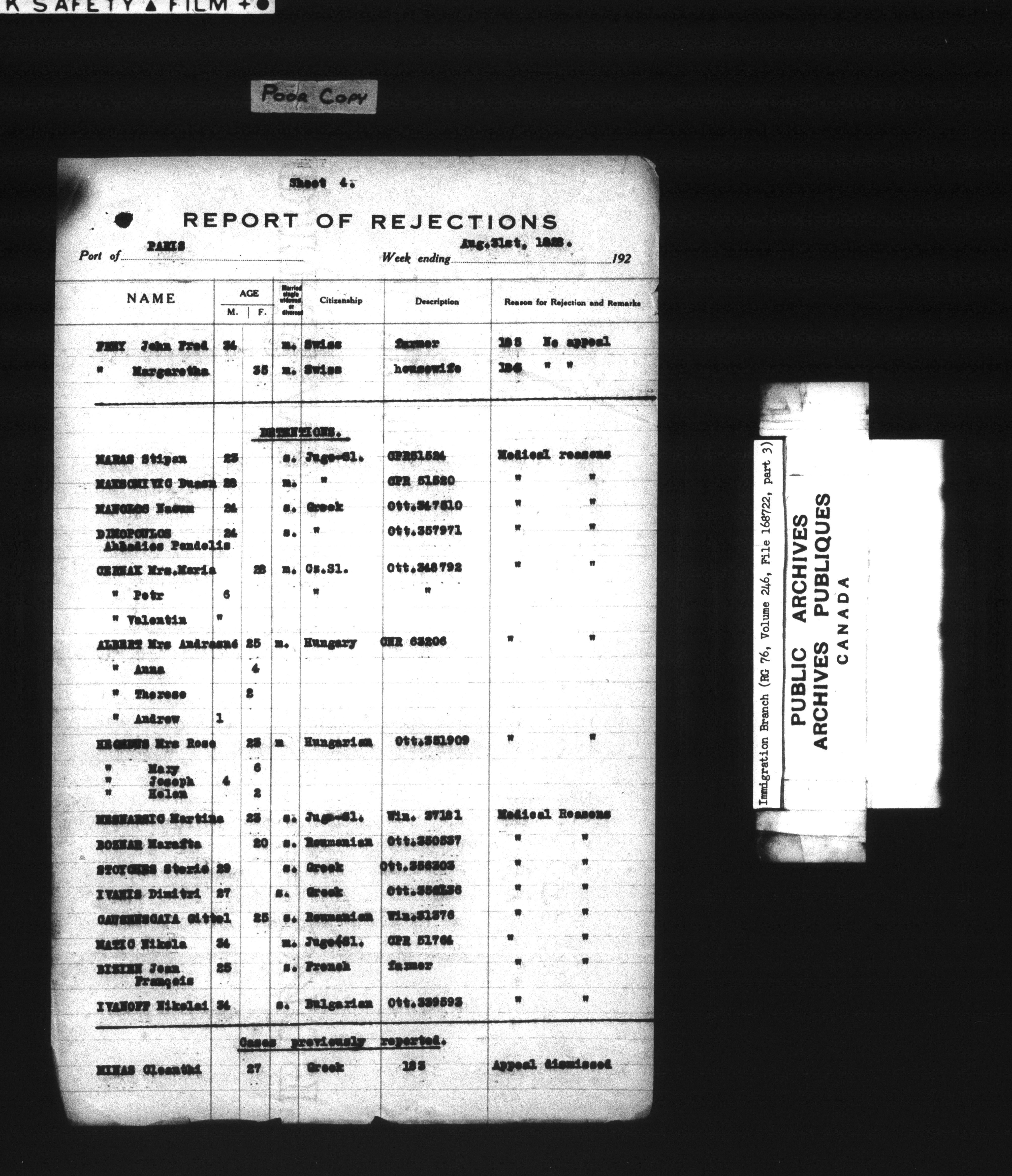 Subject, policy and case files in the First Central Registry series of the Immigration Program, 1892-1950 - 7395