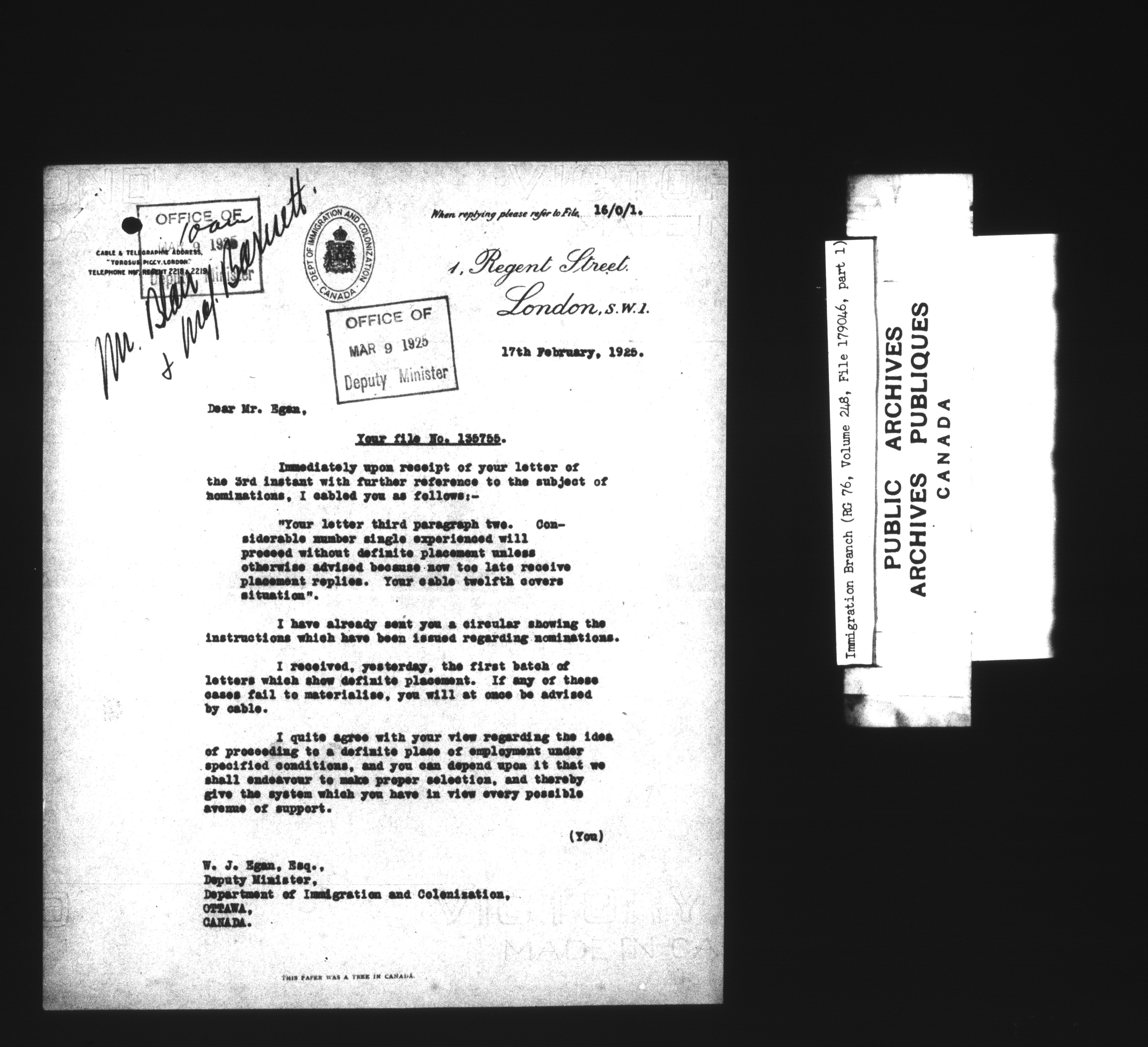 Subject, policy and case files in the First Central Registry series of the Immigration Program, 1892-1950 - 7397