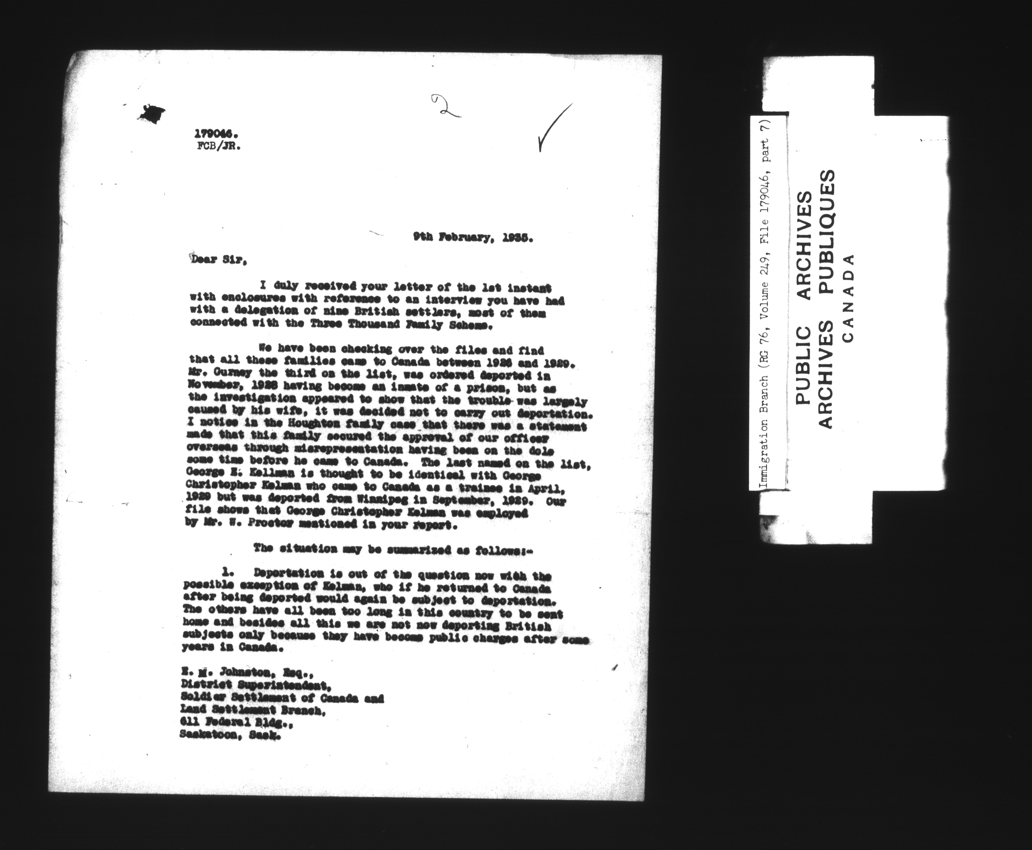 Subject, policy and case files in the First Central Registry series of the Immigration Program, 1892-1950 - 7398