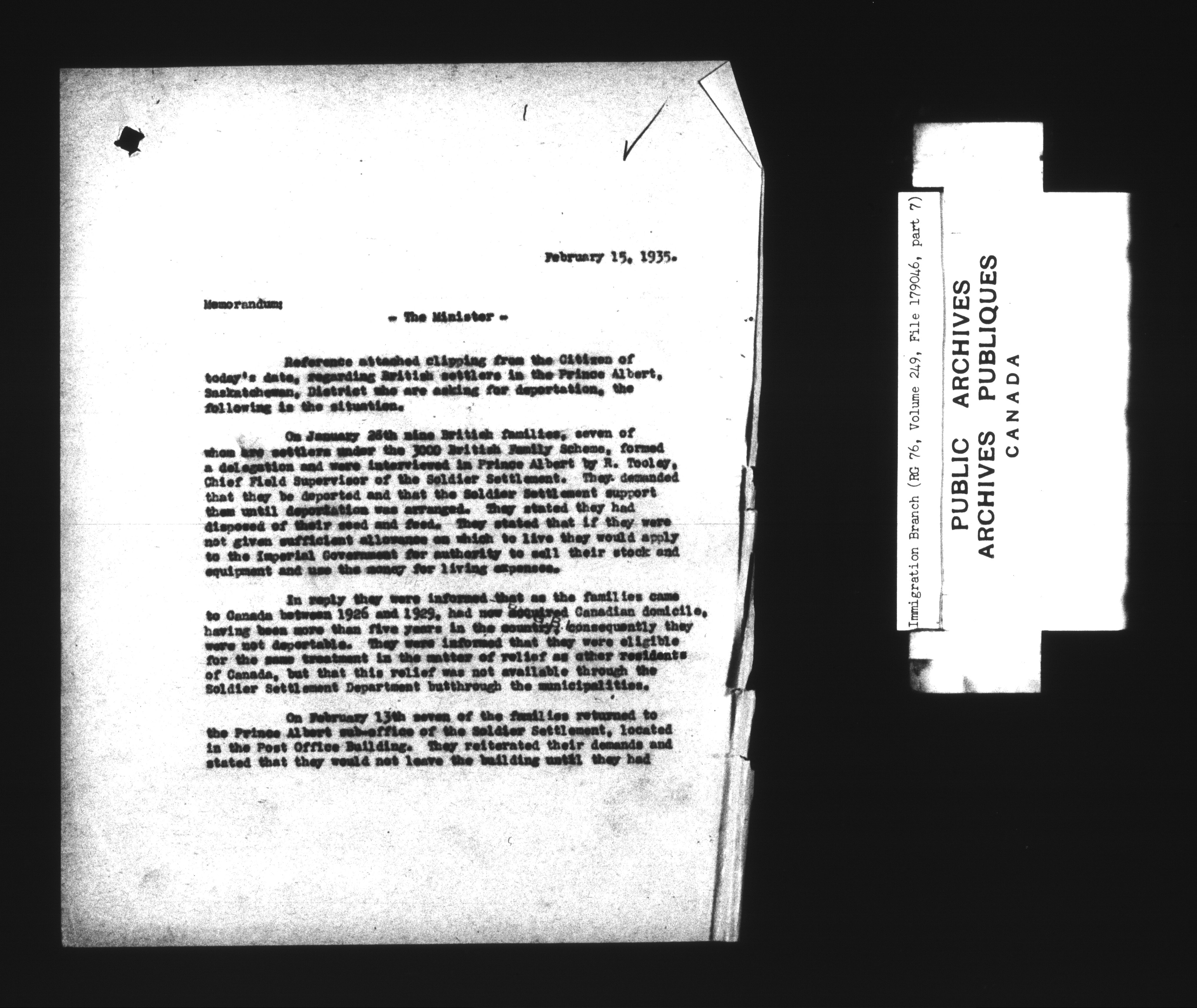 Subject, policy and case files in the First Central Registry series of the Immigration Program, 1892-1950 - 7398