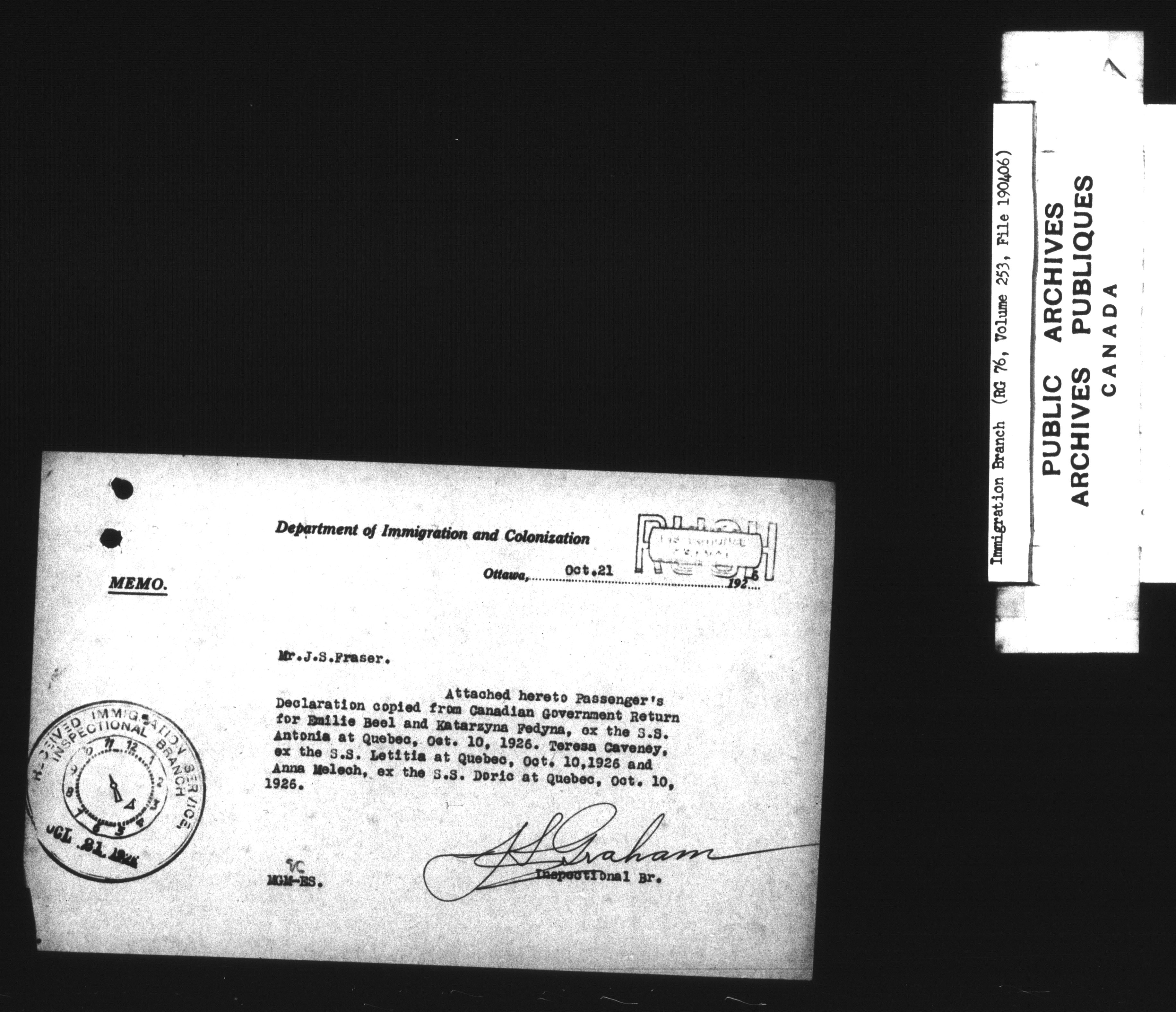 Subject, policy and case files in the First Central Registry series of the Immigration Program, 1892-1950 - 7400