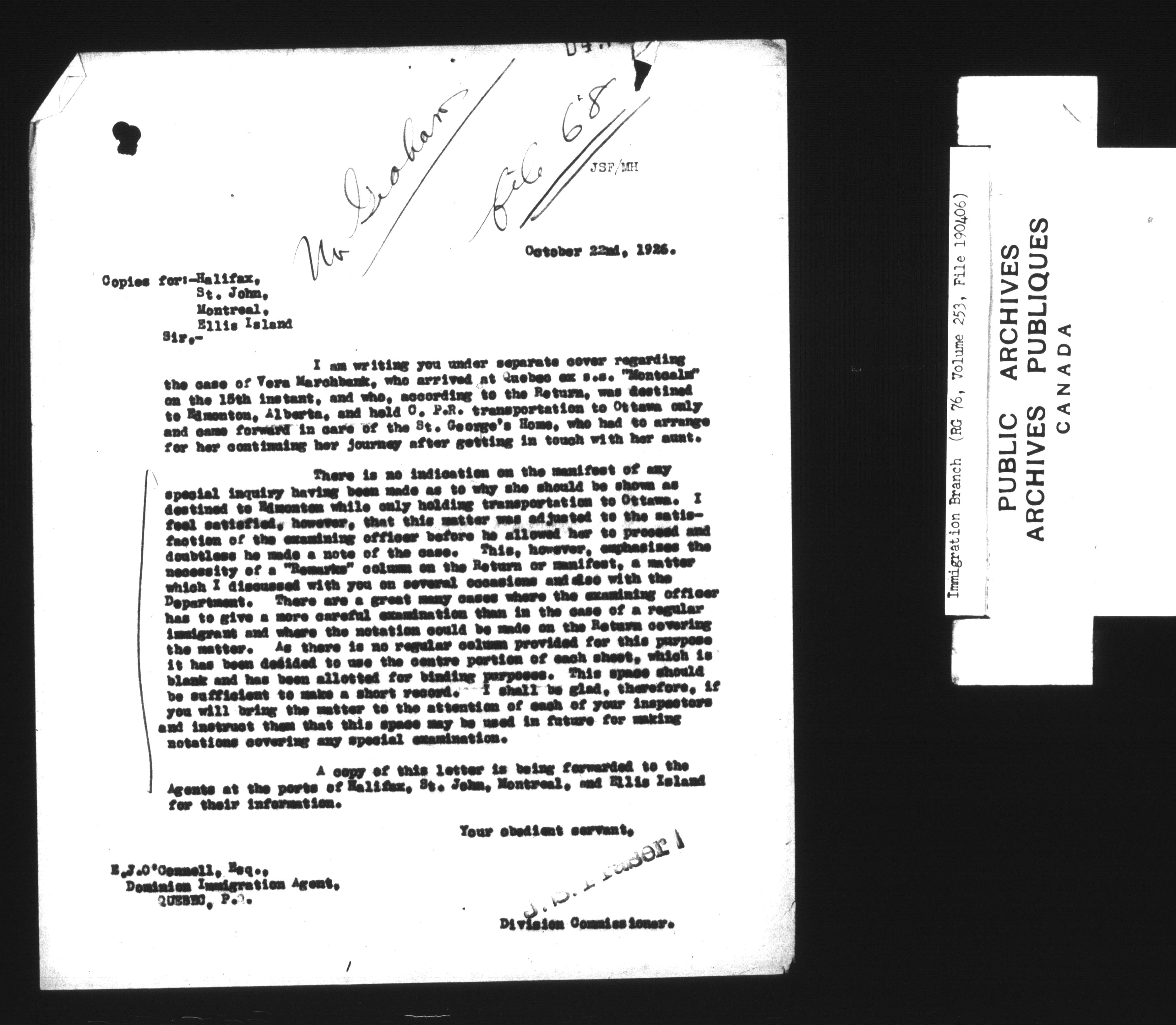Subject, policy and case files in the First Central Registry series of the Immigration Program, 1892-1950 - 7400