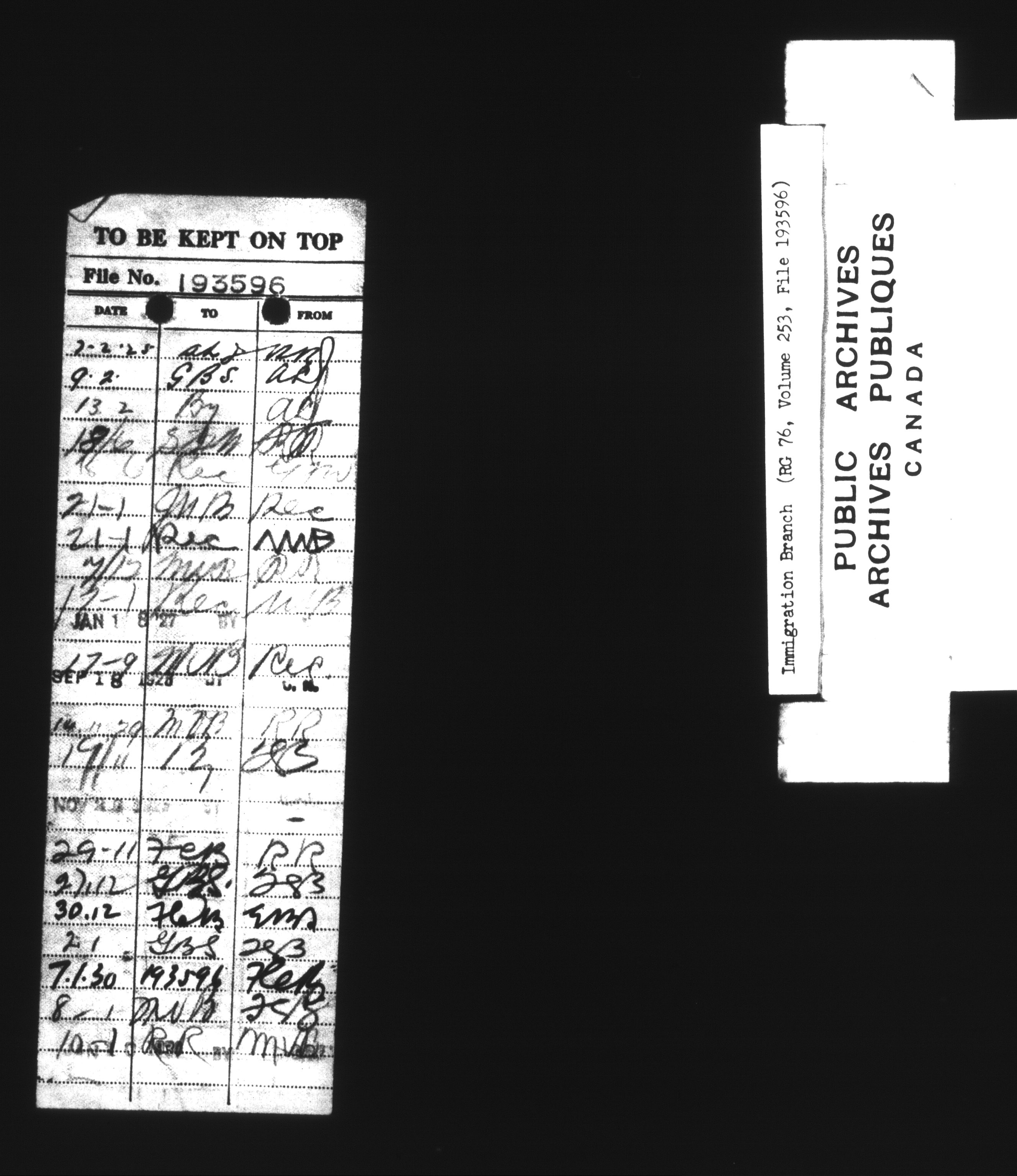 Subject, policy and case files in the First Central Registry series of the Immigration Program, 1892-1950 - 7402