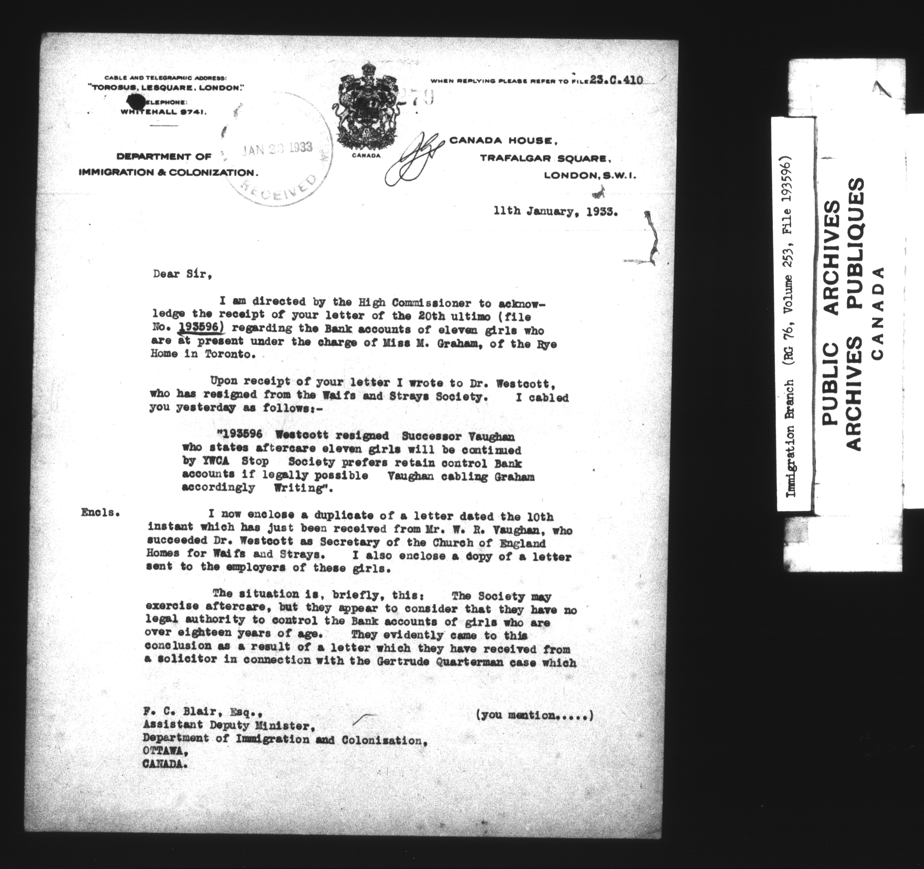 Subject, policy and case files in the First Central Registry series of the Immigration Program, 1892-1950 - 7402