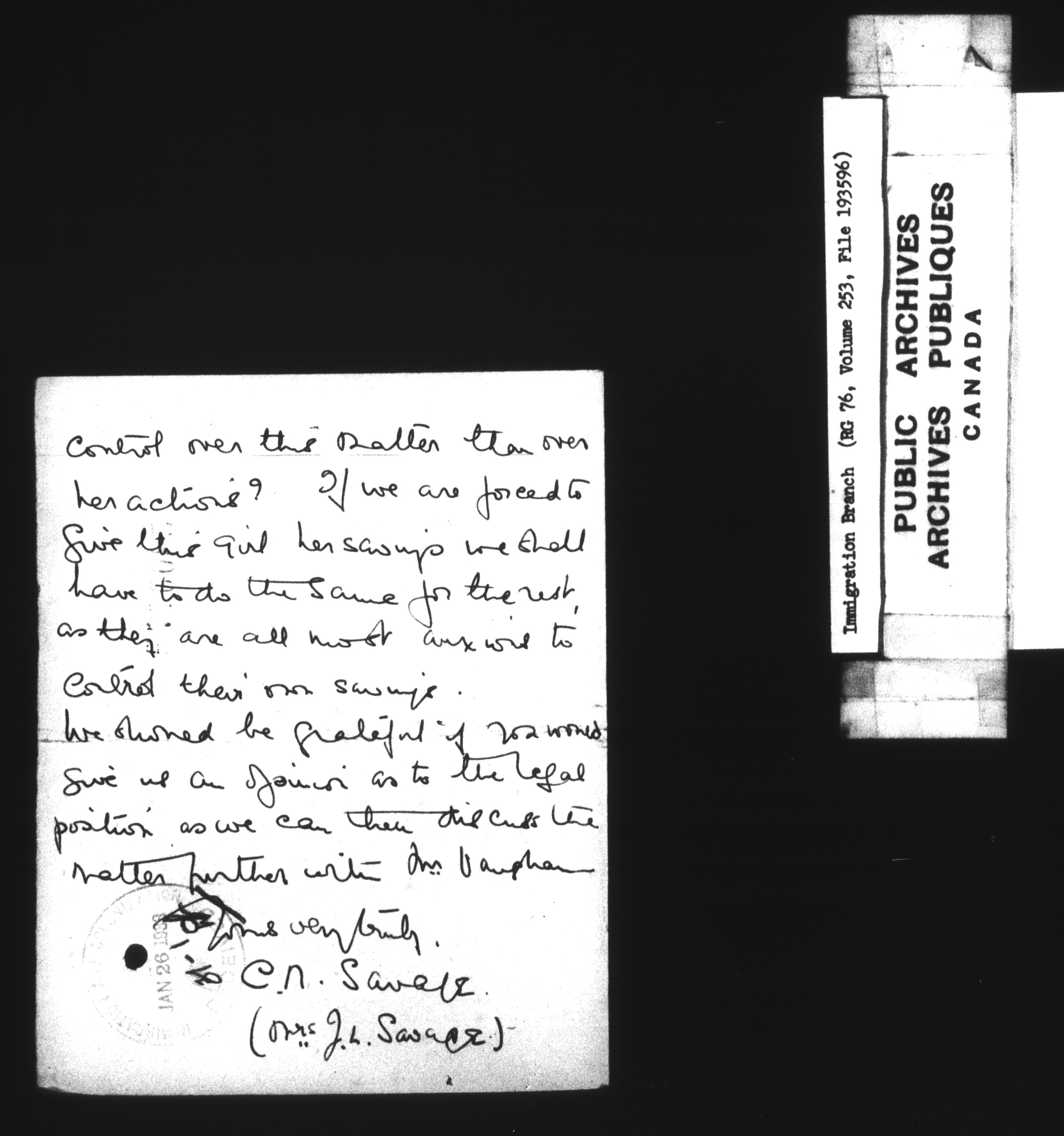 Subject, policy and case files in the First Central Registry series of the Immigration Program, 1892-1950 - 7402