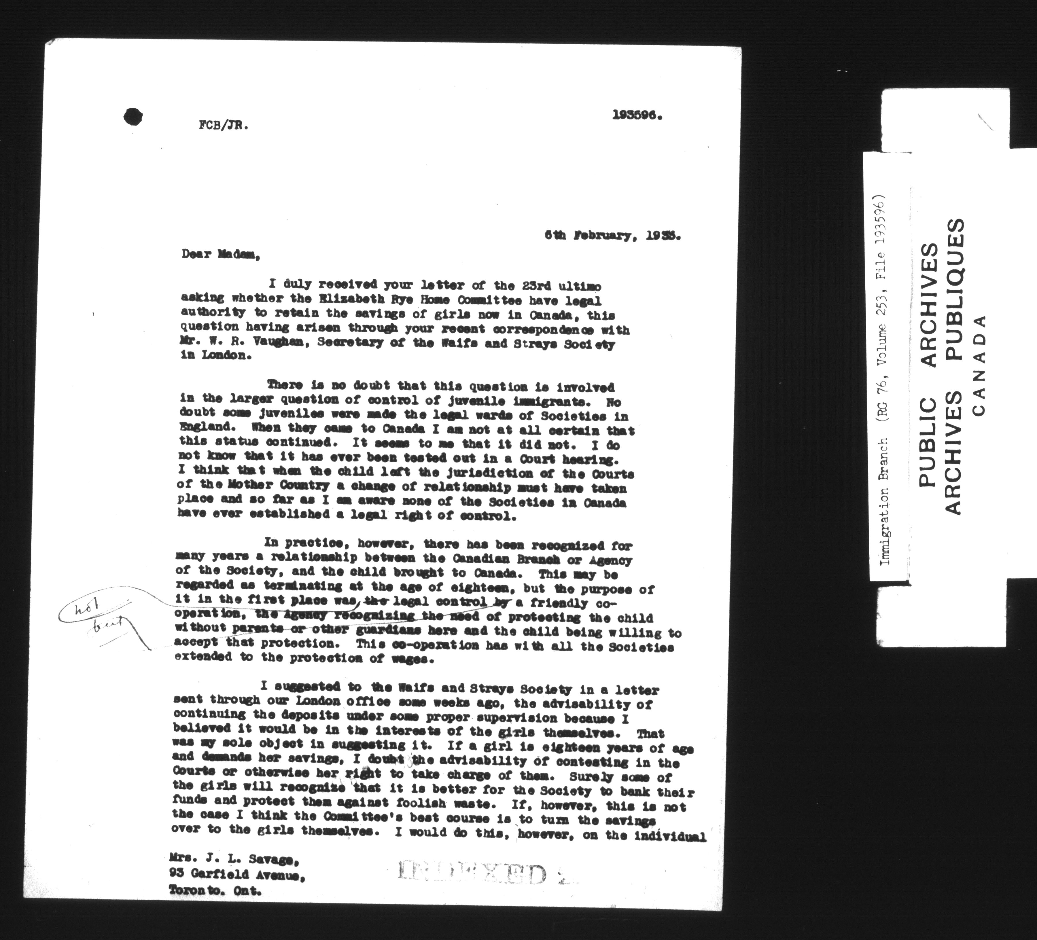Subject, policy and case files in the First Central Registry series of the Immigration Program, 1892-1950 - 7402