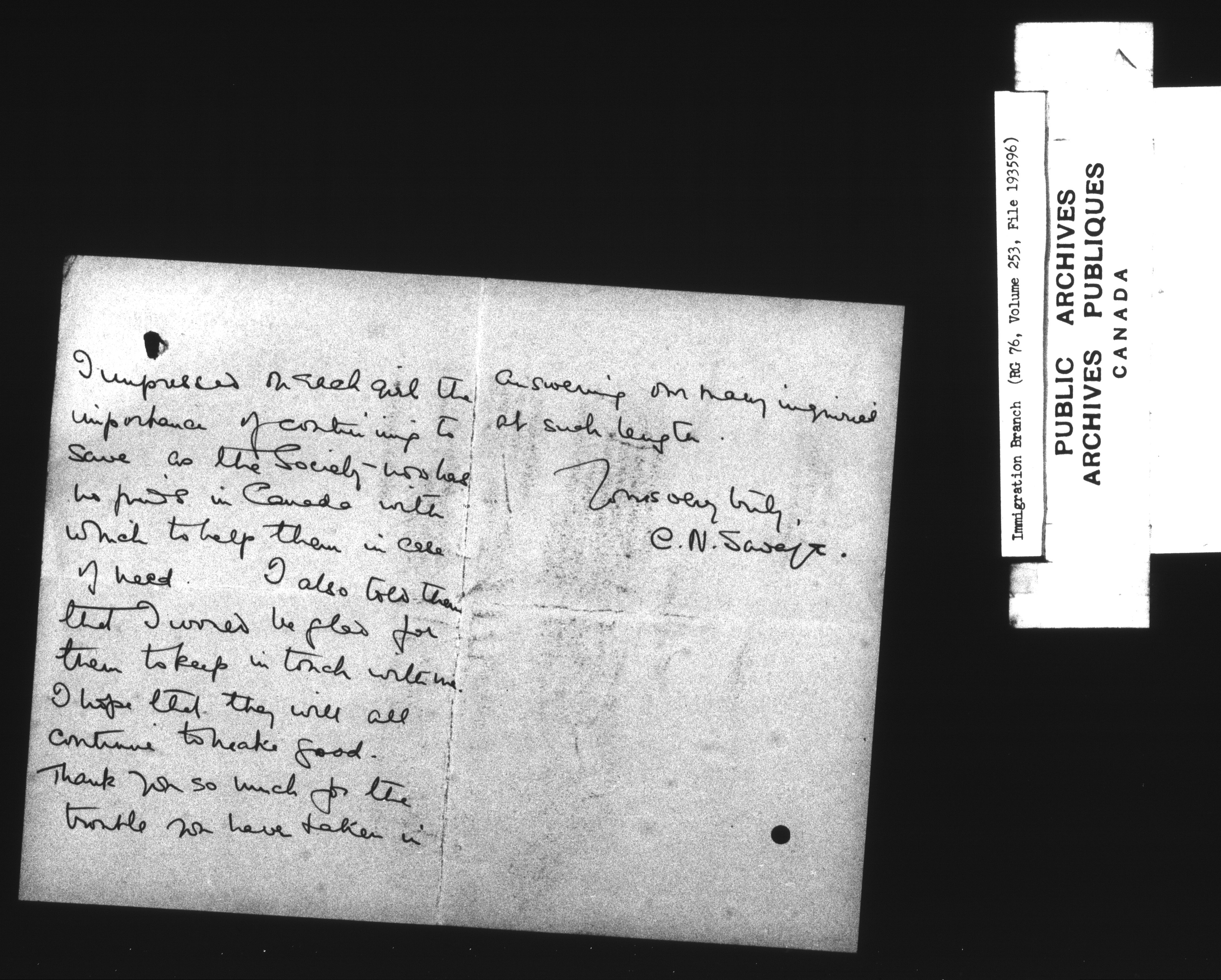 Subject, policy and case files in the First Central Registry series of the Immigration Program, 1892-1950 - 7402