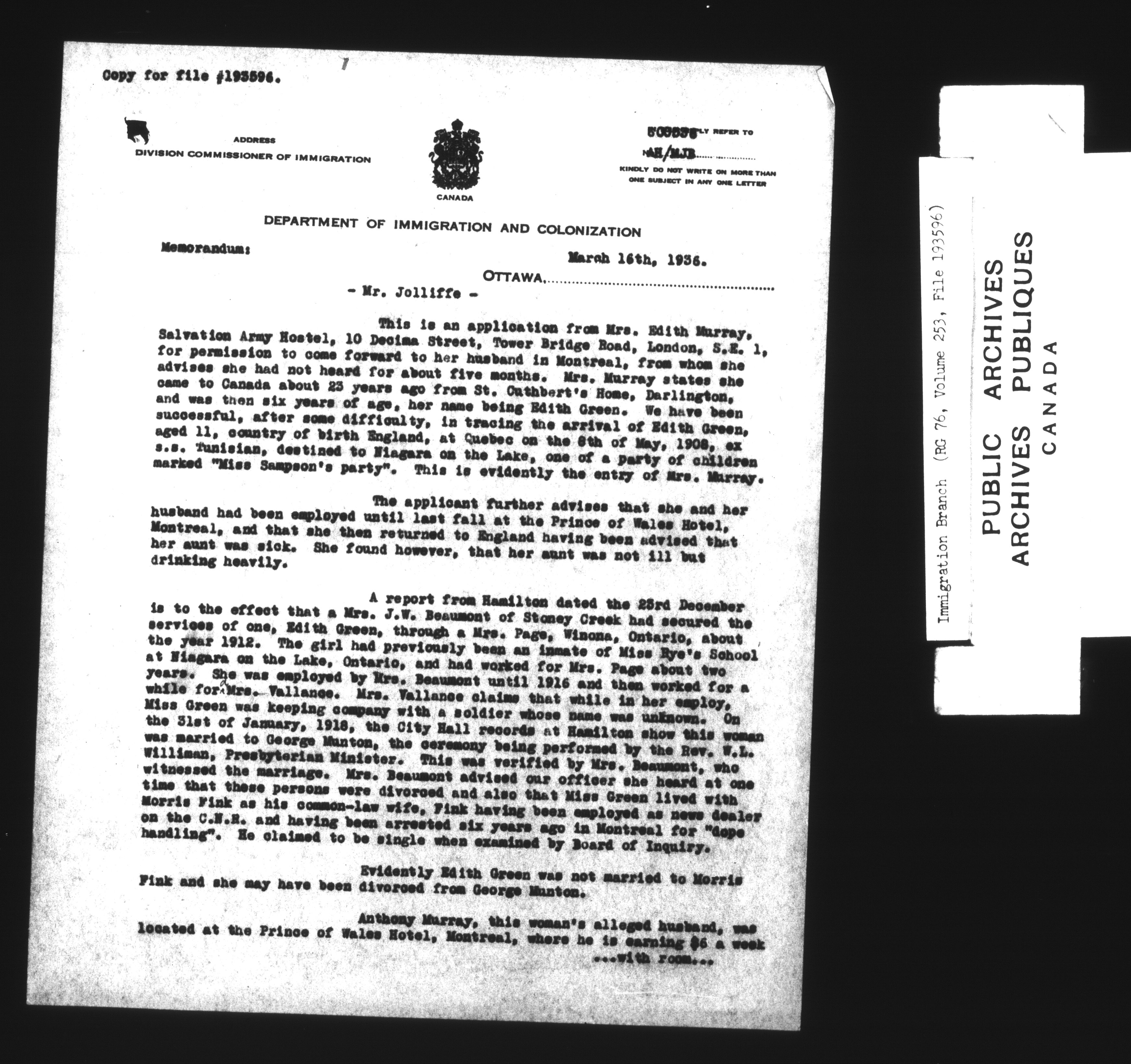 Subject, policy and case files in the First Central Registry series of the Immigration Program, 1892-1950 - 7402