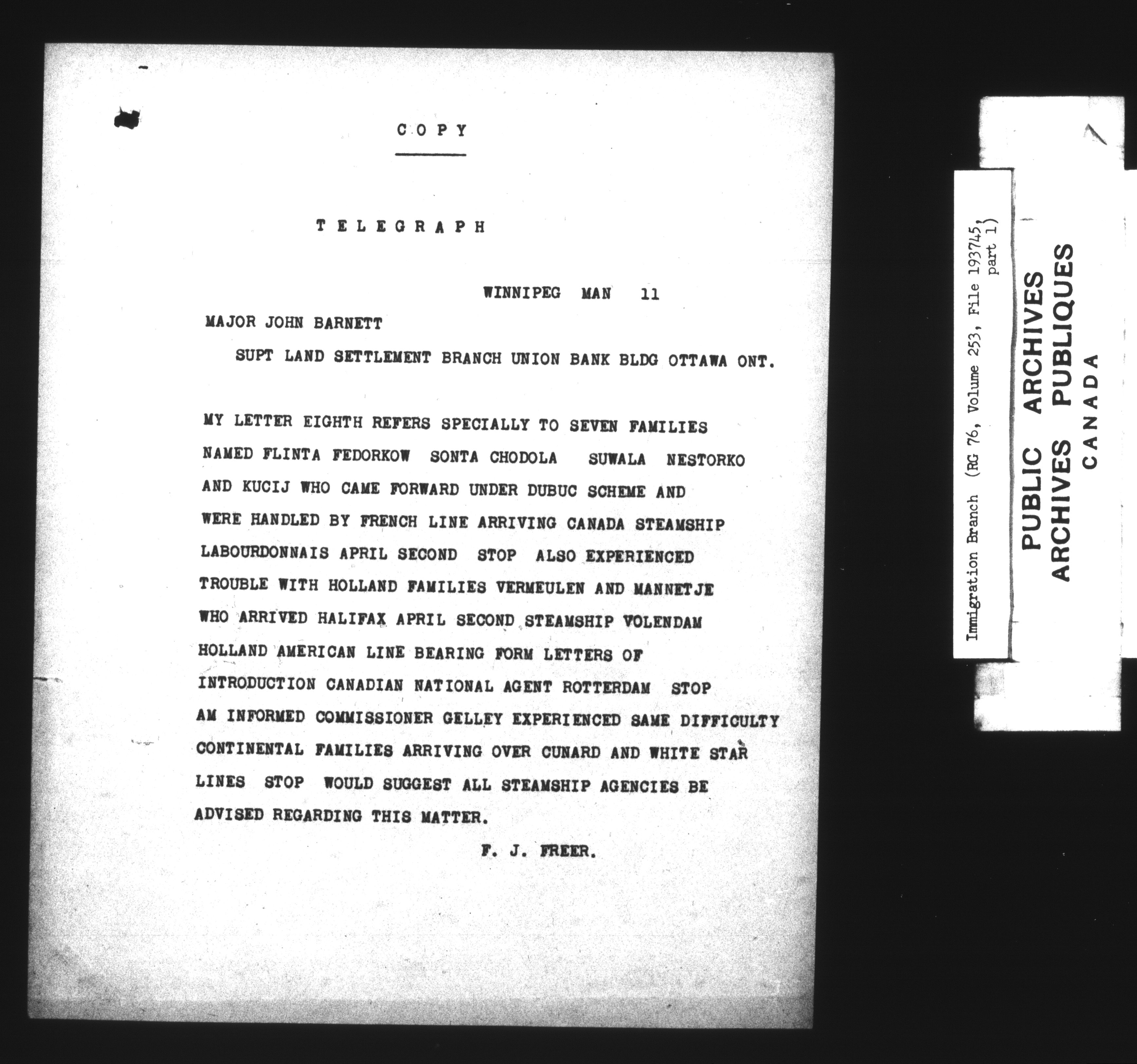 Subject, policy and case files in the First Central Registry series of the Immigration Program, 1892-1950 - 7402