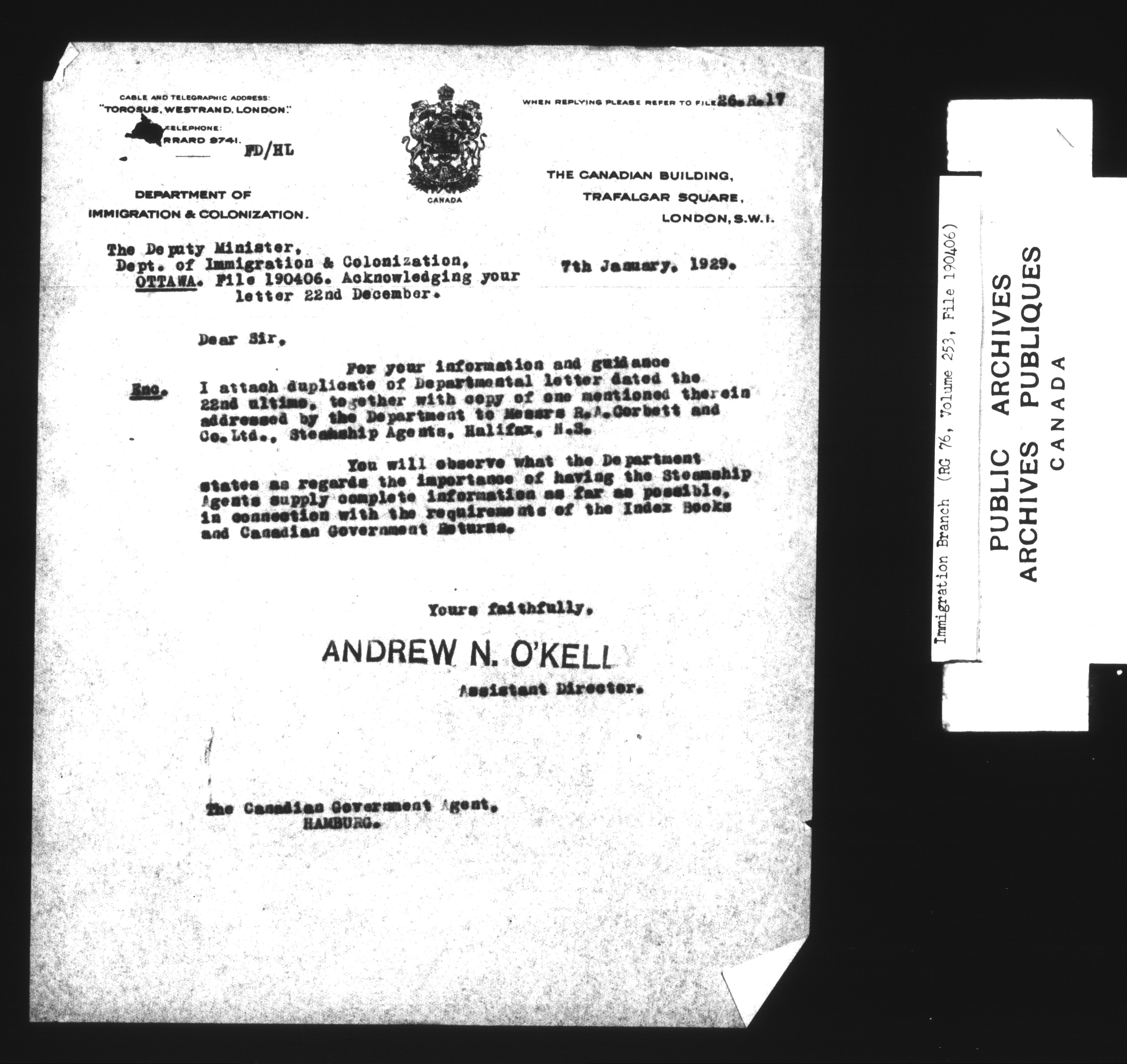 Subject, policy and case files in the First Central Registry series of the Immigration Program, 1892-1950 - 7402