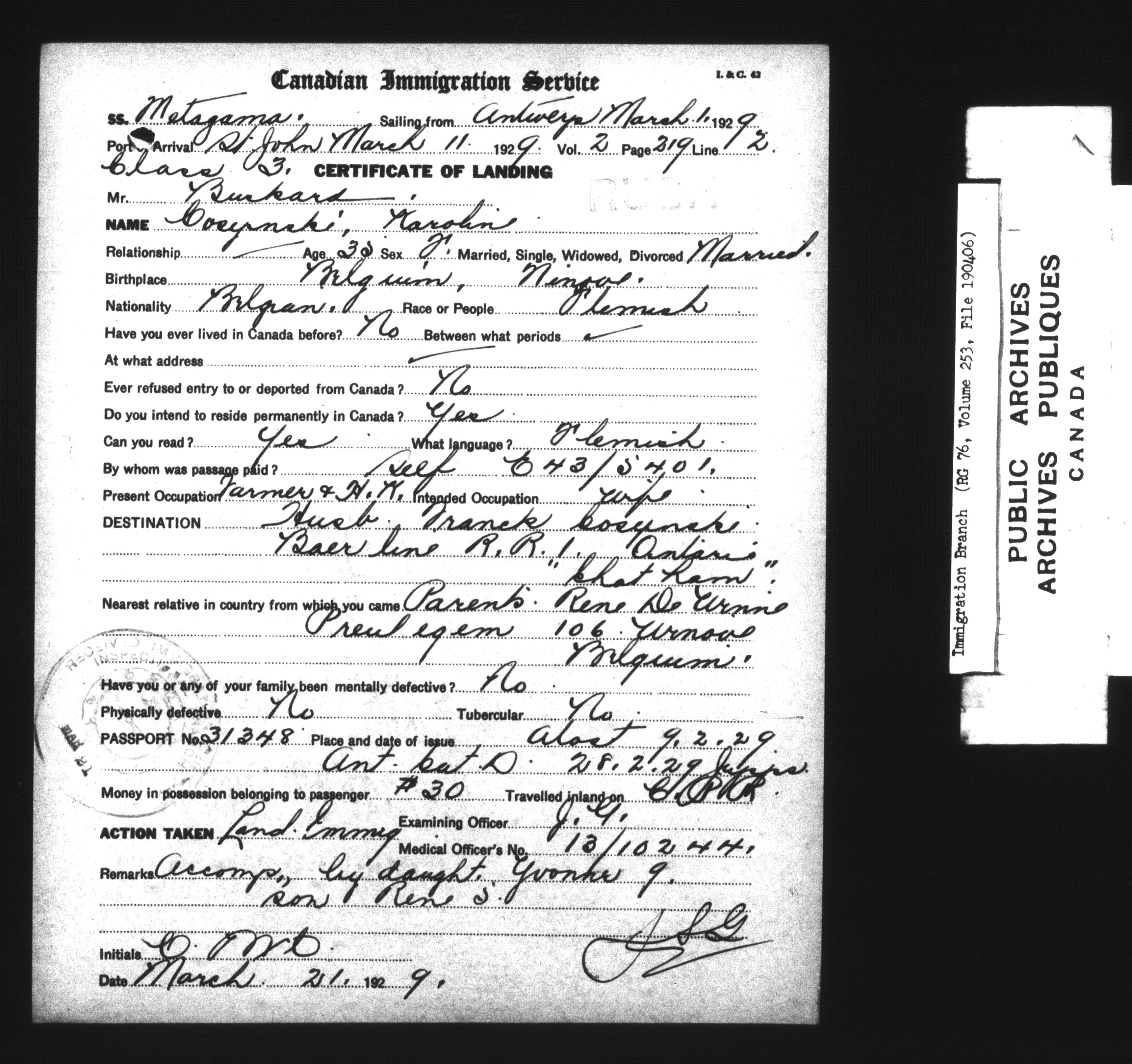 Subject, policy and case files in the First Central Registry series of the Immigration Program, 1892-1950 - 7402