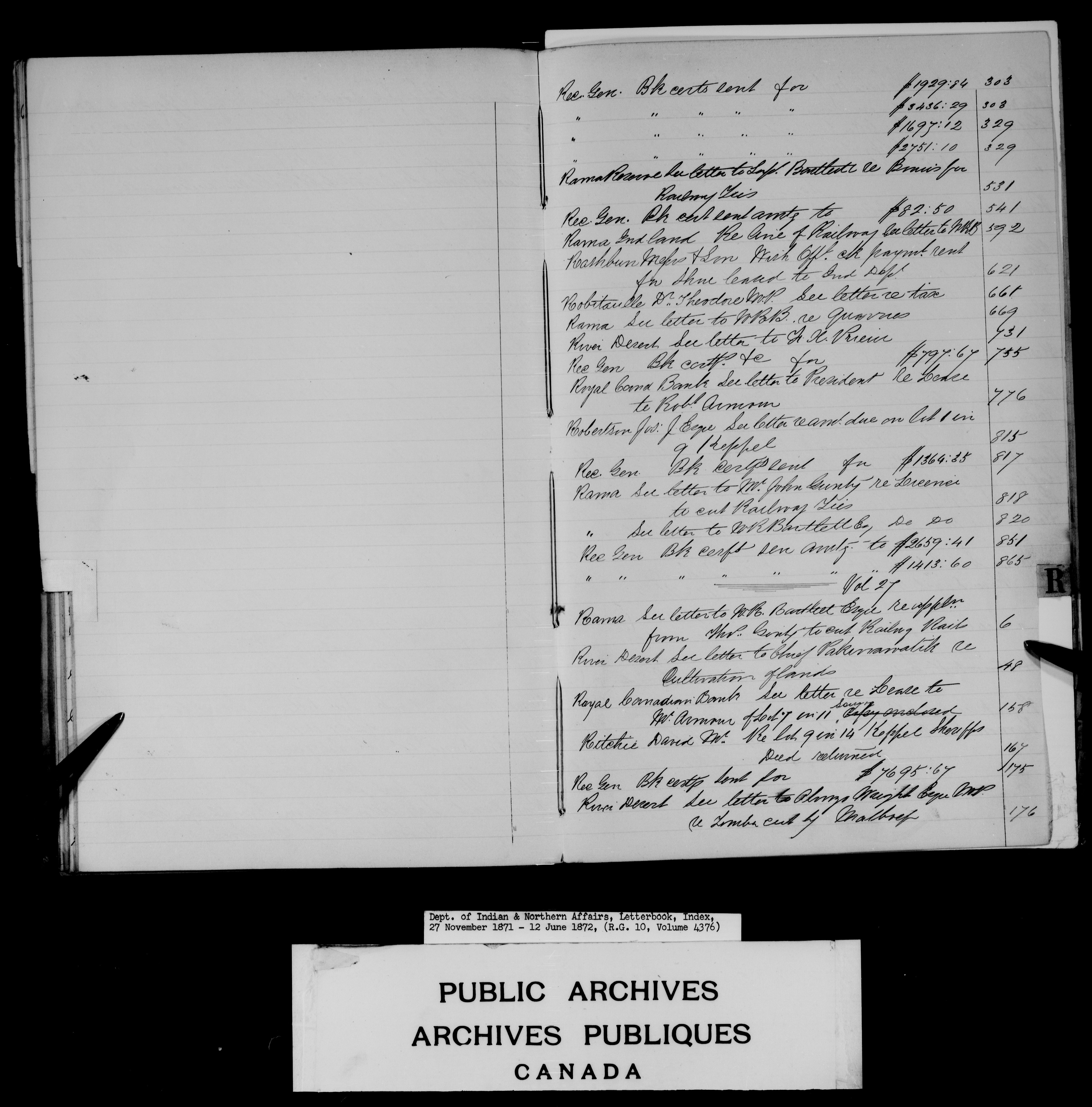Department of Indian Affairs : Letterbooks of out-going correspondence relating to the administration of Indian Affairs in both eastern and western Canada, 1871-1920 - 7404