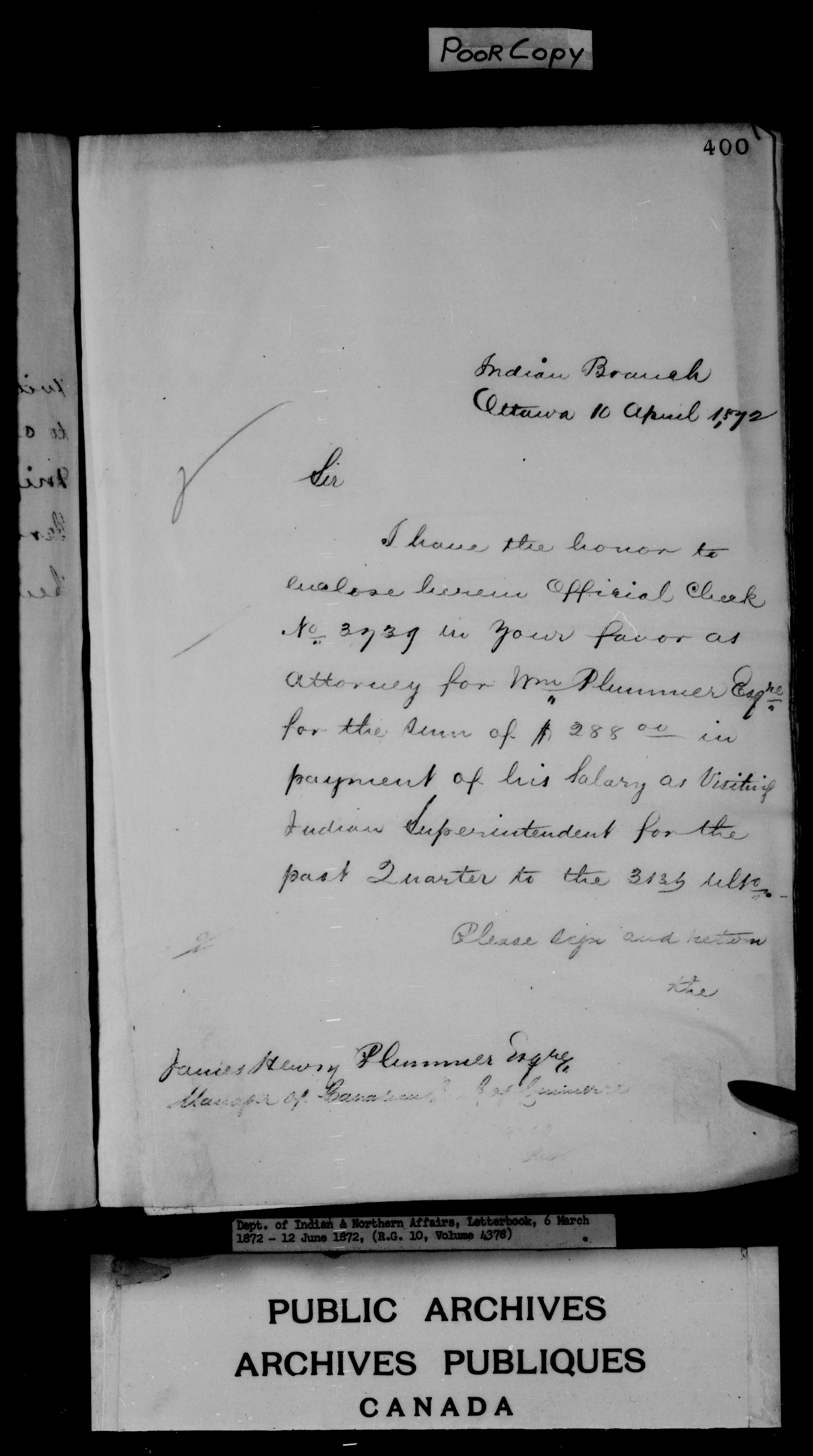 Department of Indian Affairs : Letterbooks of out-going correspondence relating to the administration of Indian Affairs in both eastern and western Canada, 1871-1920 - 7405