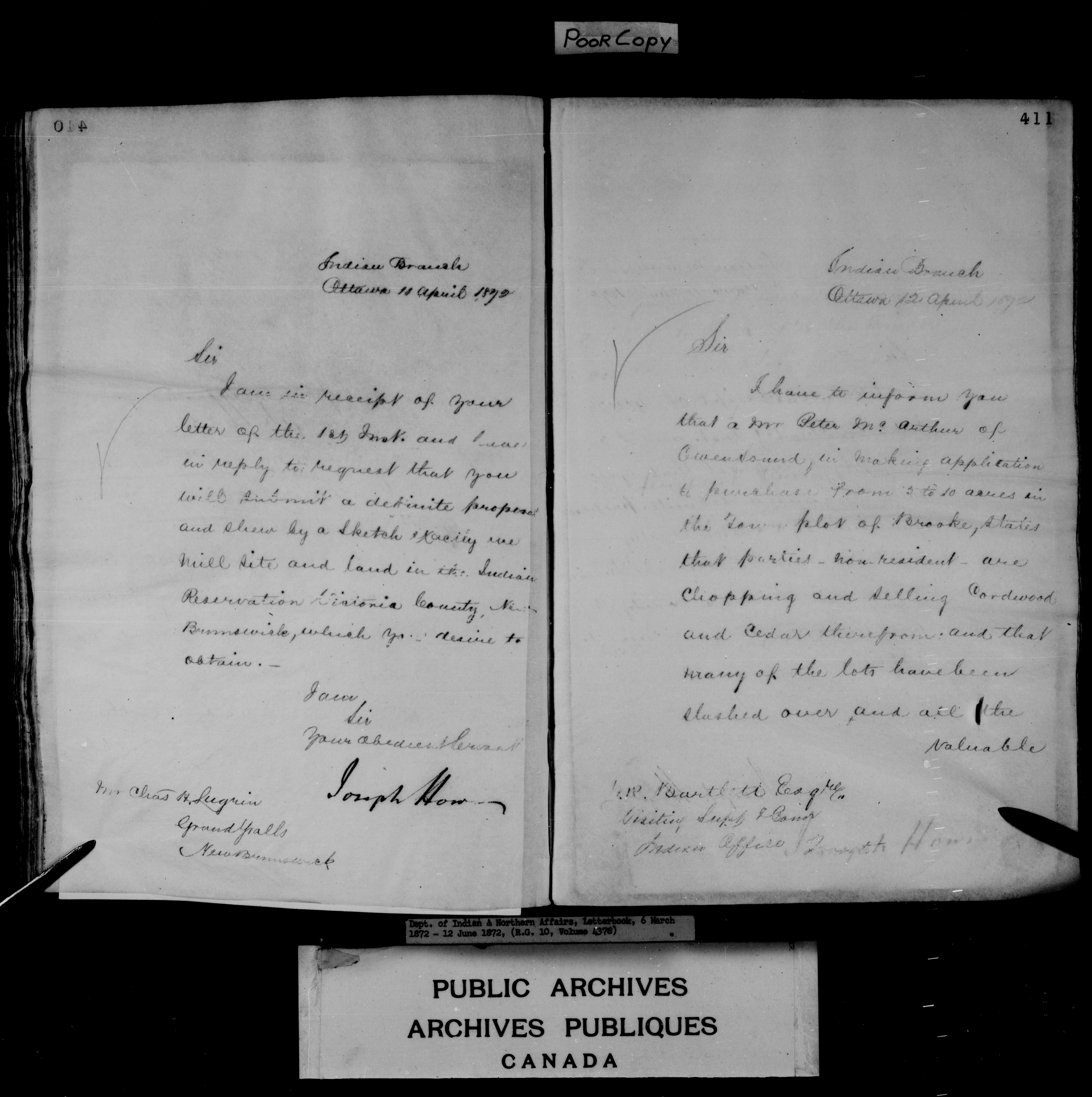 Department of Indian Affairs : Letterbooks of out-going correspondence relating to the administration of Indian Affairs in both eastern and western Canada, 1871-1920 - 7405