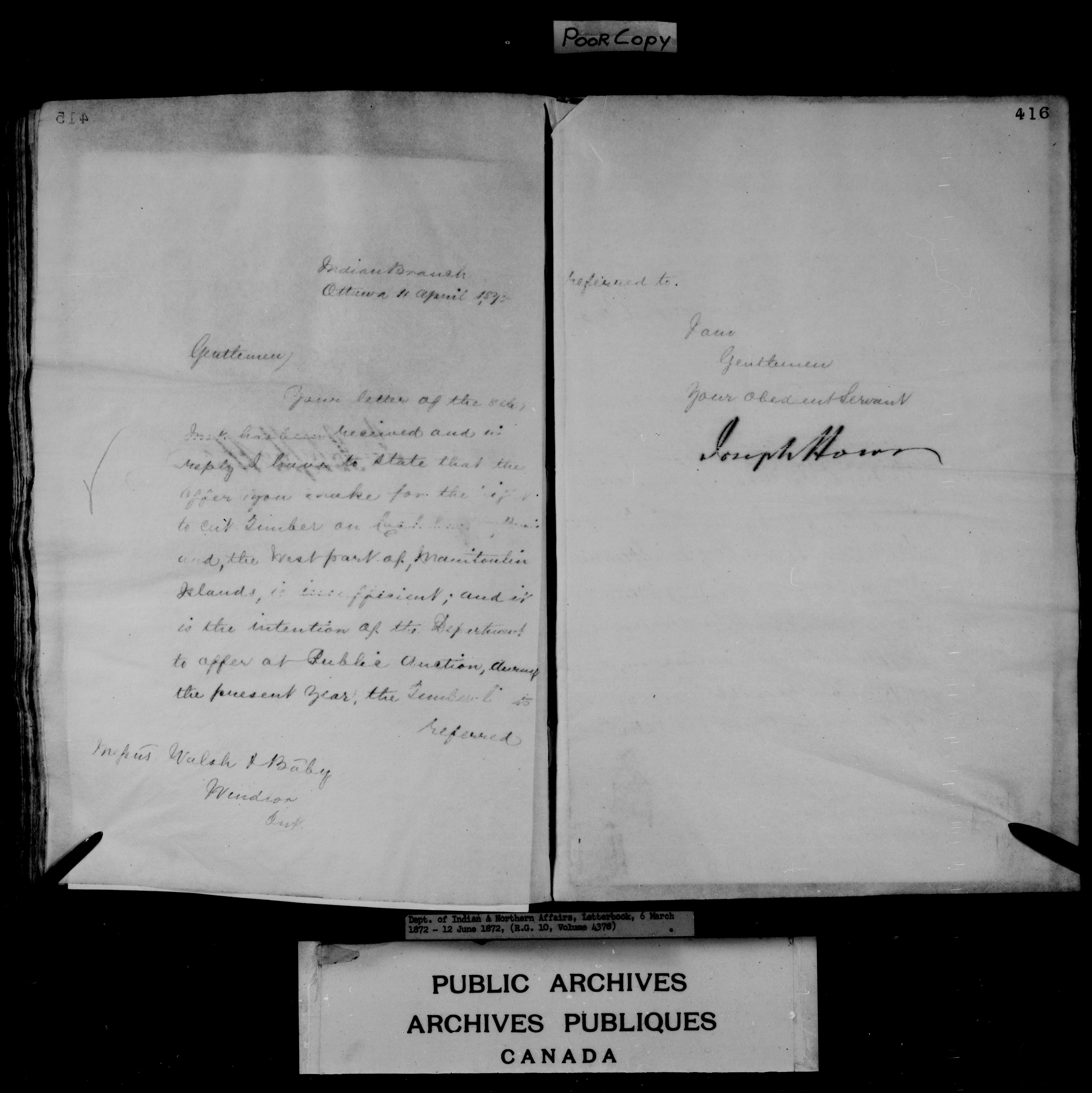 Department of Indian Affairs : Letterbooks of out-going correspondence relating to the administration of Indian Affairs in both eastern and western Canada, 1871-1920 - 7405