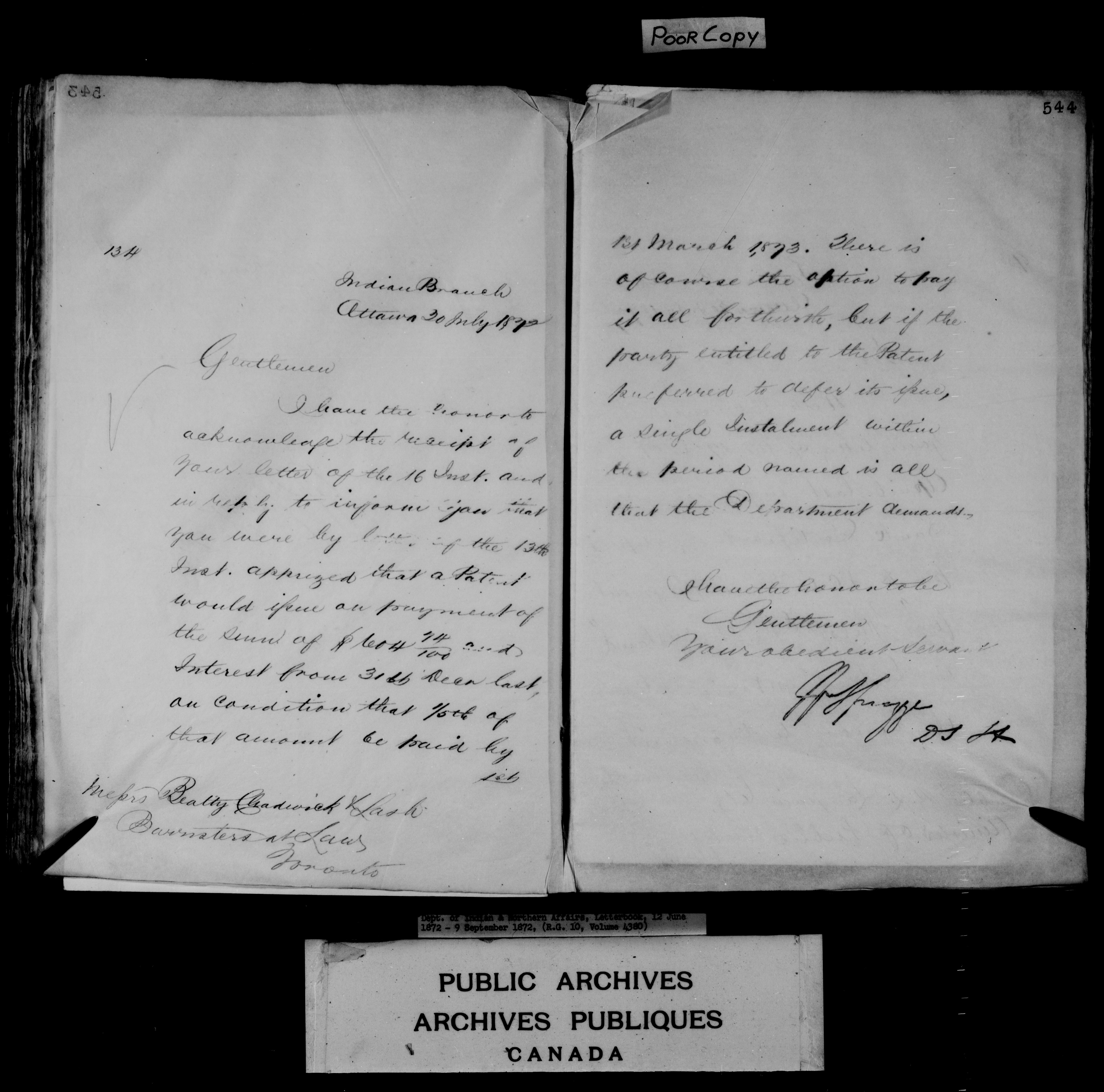 Department of Indian Affairs : Letterbooks of out-going correspondence relating to the administration of Indian Affairs in both eastern and western Canada, 1871-1920 - 7405
