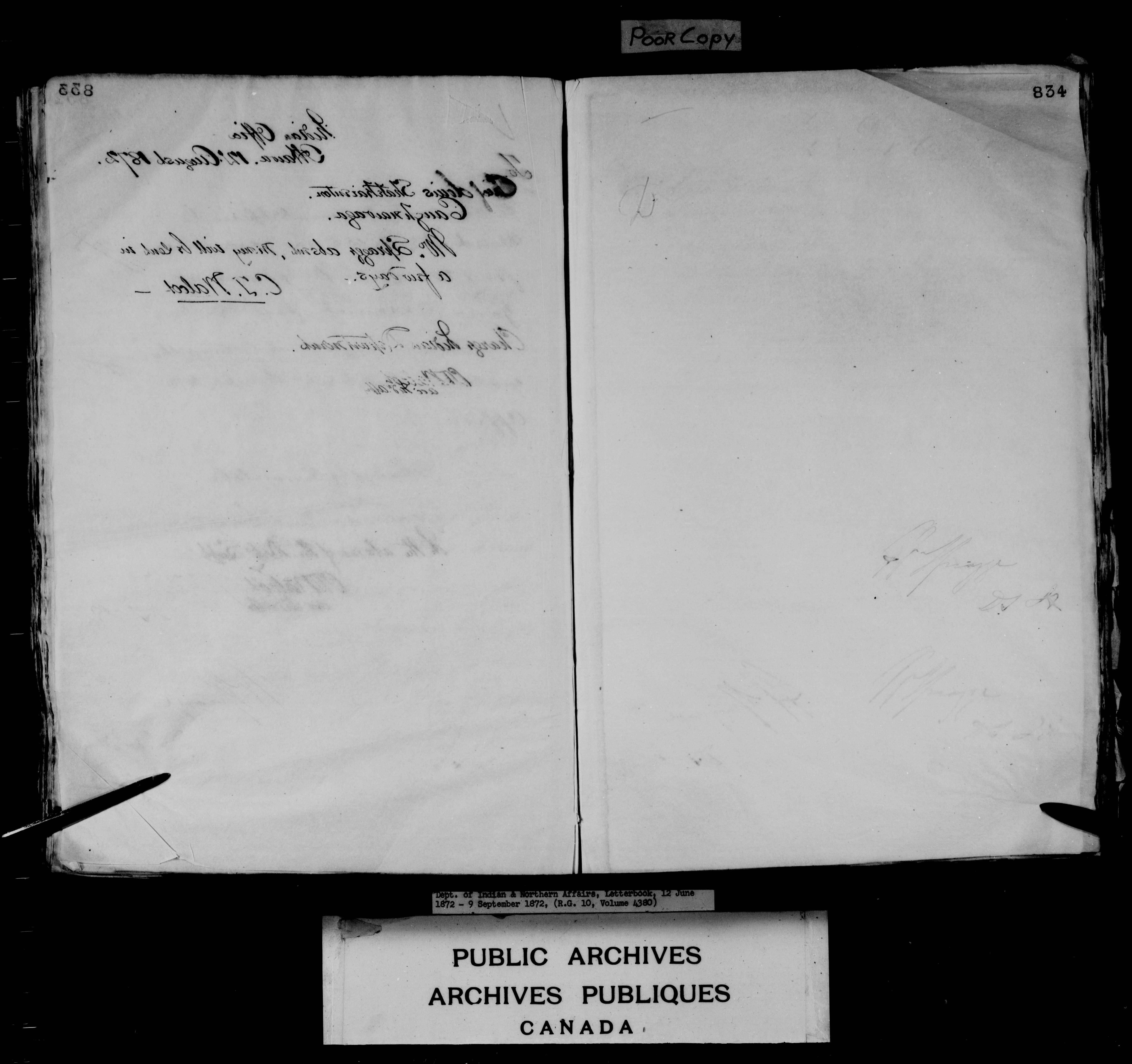 Department of Indian Affairs : Letterbooks of out-going correspondence relating to the administration of Indian Affairs in both eastern and western Canada, 1871-1920 - 7406