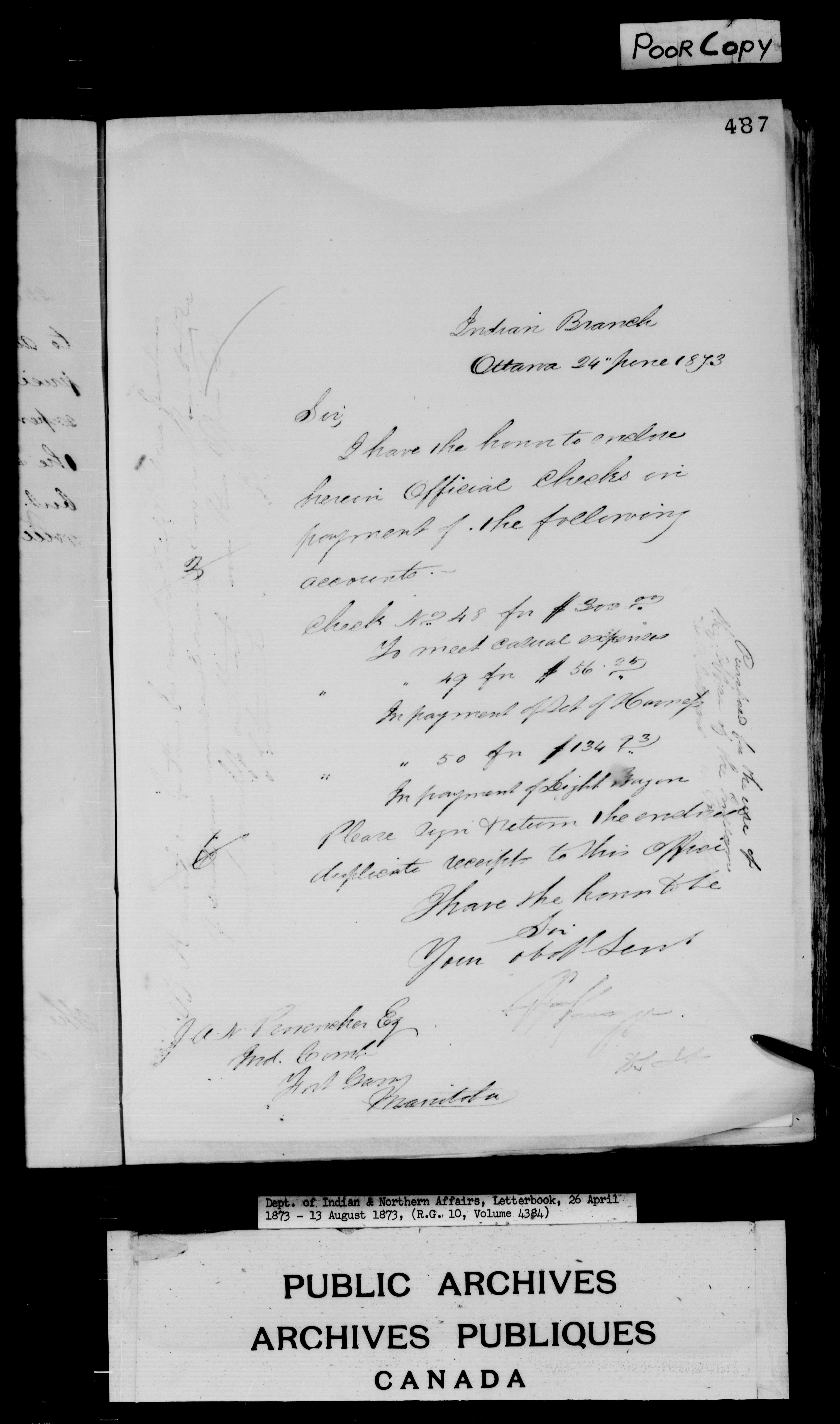 Department of Indian Affairs : Letterbooks of out-going correspondence relating to the administration of Indian Affairs in both eastern and western Canada, 1871-1920 - 7407