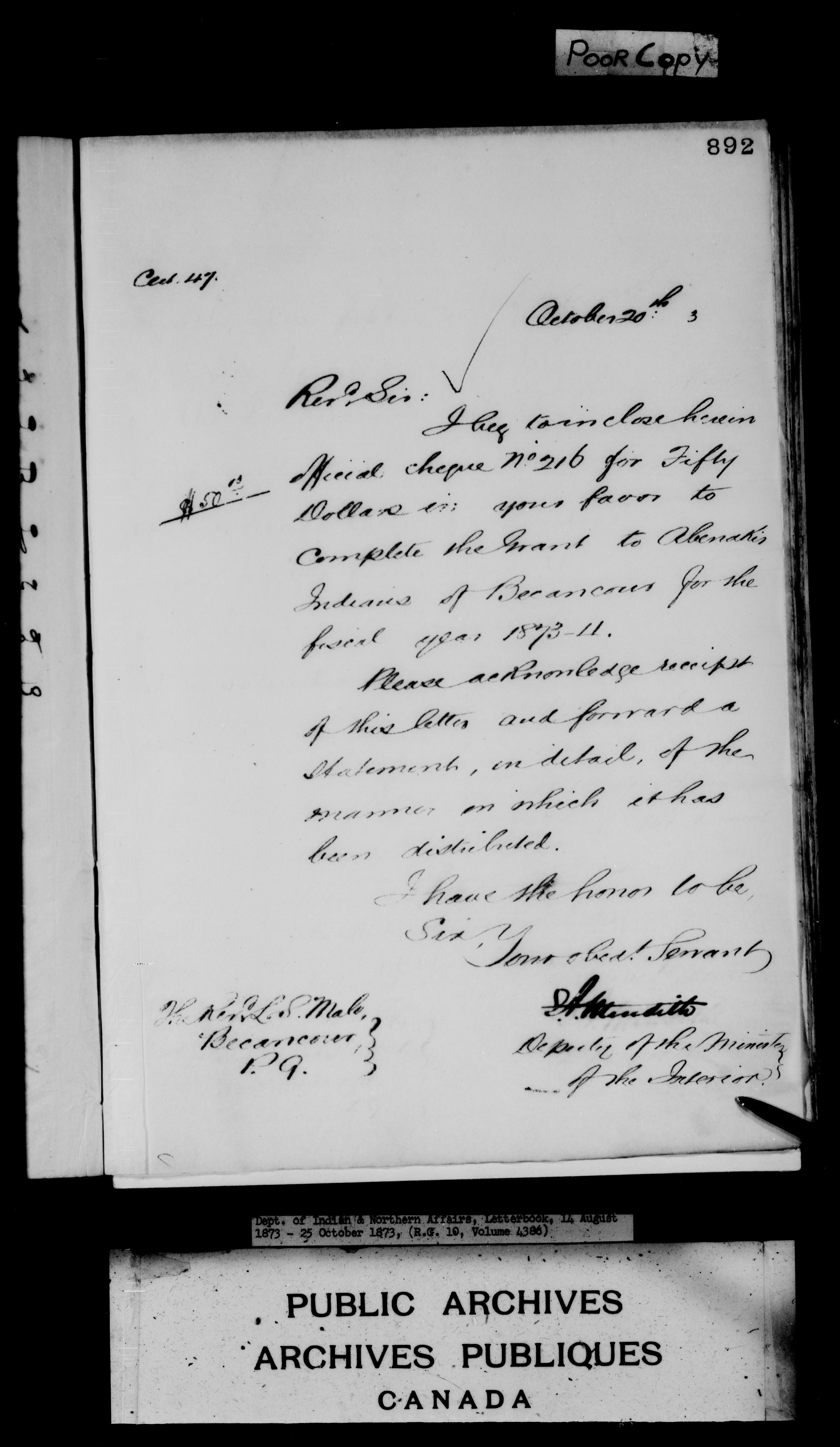 Department of Indian Affairs : Departmental letterbooks : C-7408
