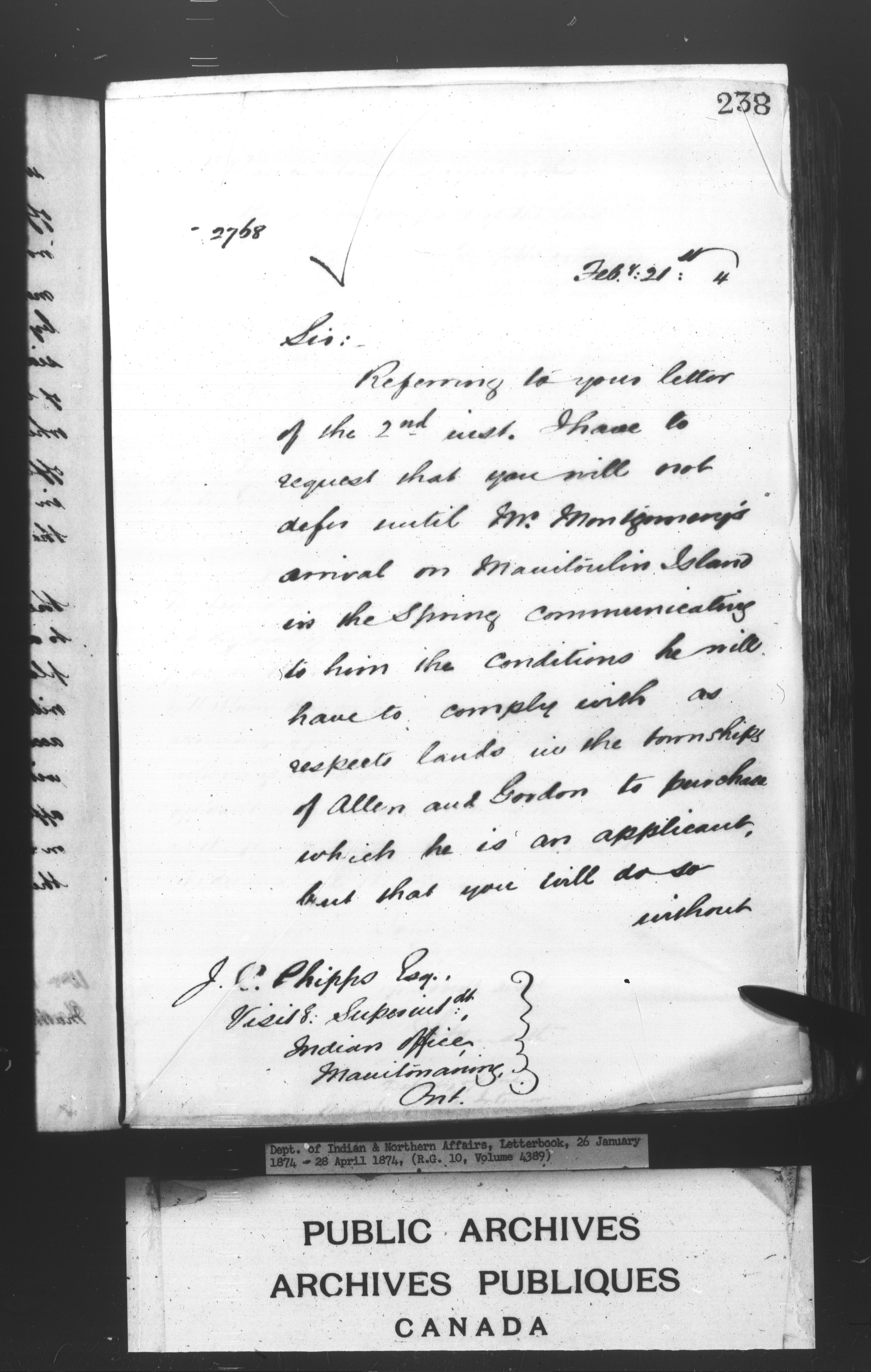 Department of Indian Affairs : Letterbooks of out-going correspondence relating to the administration of Indian Affairs in both eastern and western Canada, 1871-1920 - 7409