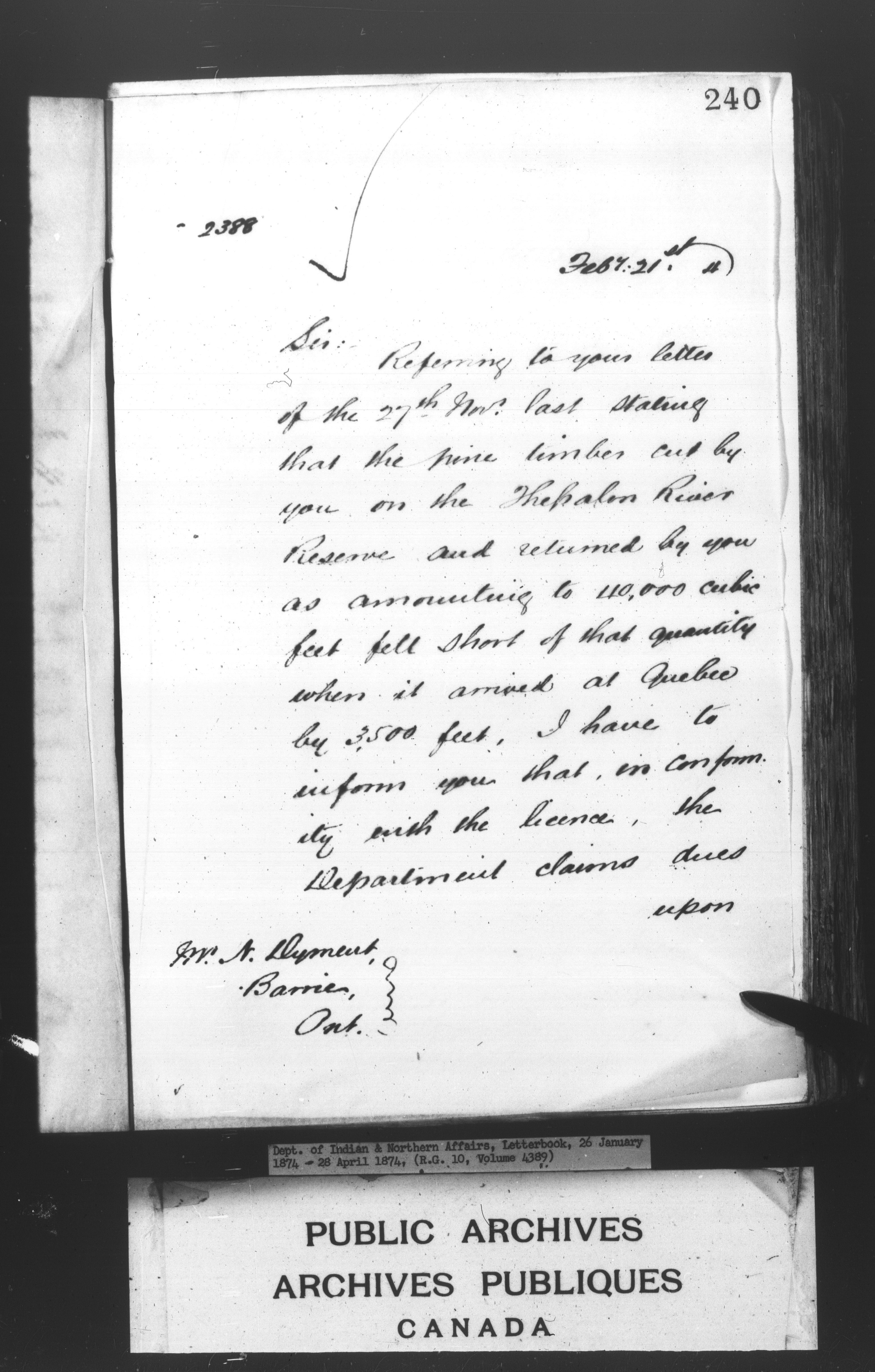 Department of Indian Affairs : Letterbooks of out-going correspondence relating to the administration of Indian Affairs in both eastern and western Canada, 1871-1920 - 7409