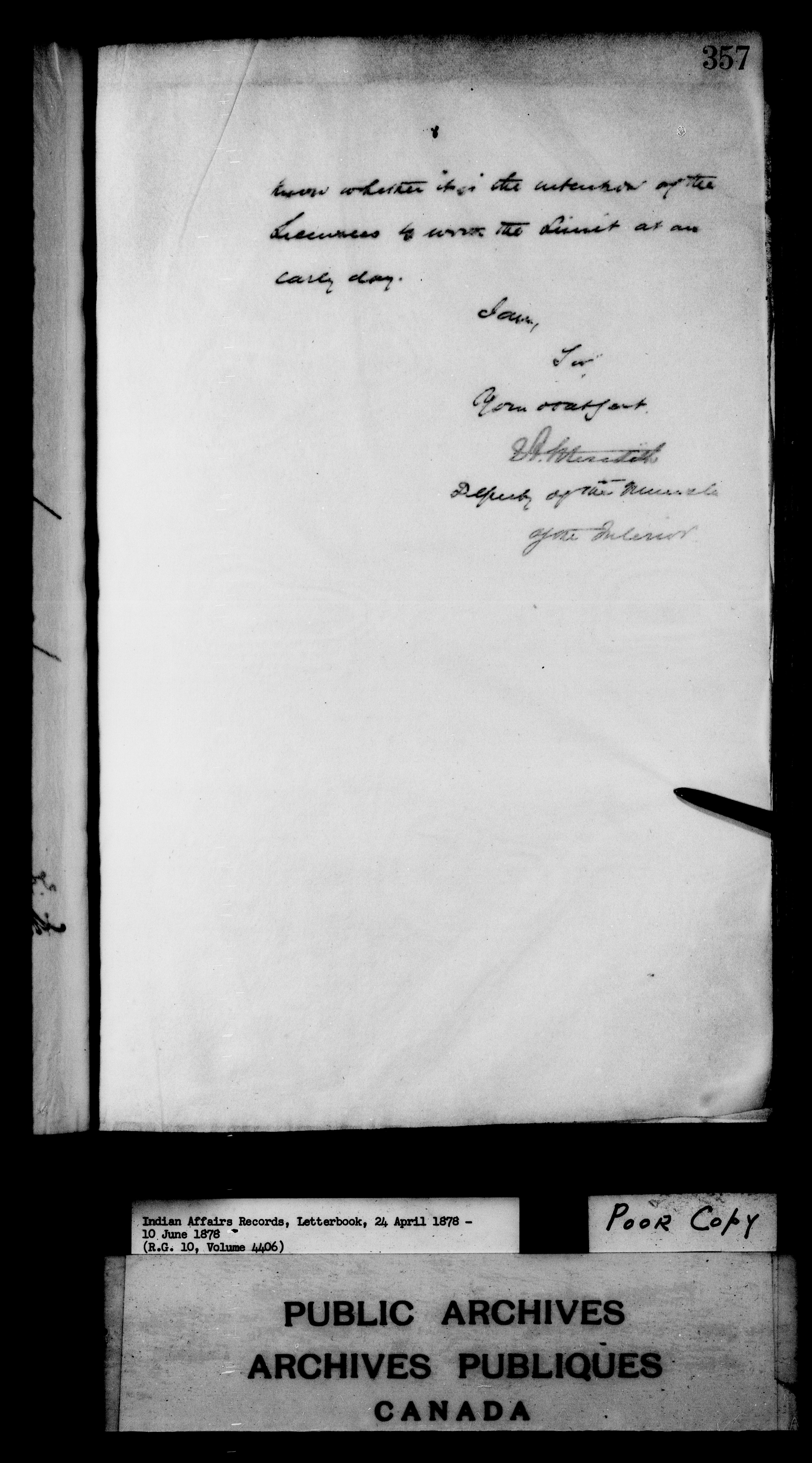 Department of Indian Affairs : Letterbooks of out-going correspondence relating to the administration of Indian Affairs in both eastern and western Canada, 1871-1920 - 7421