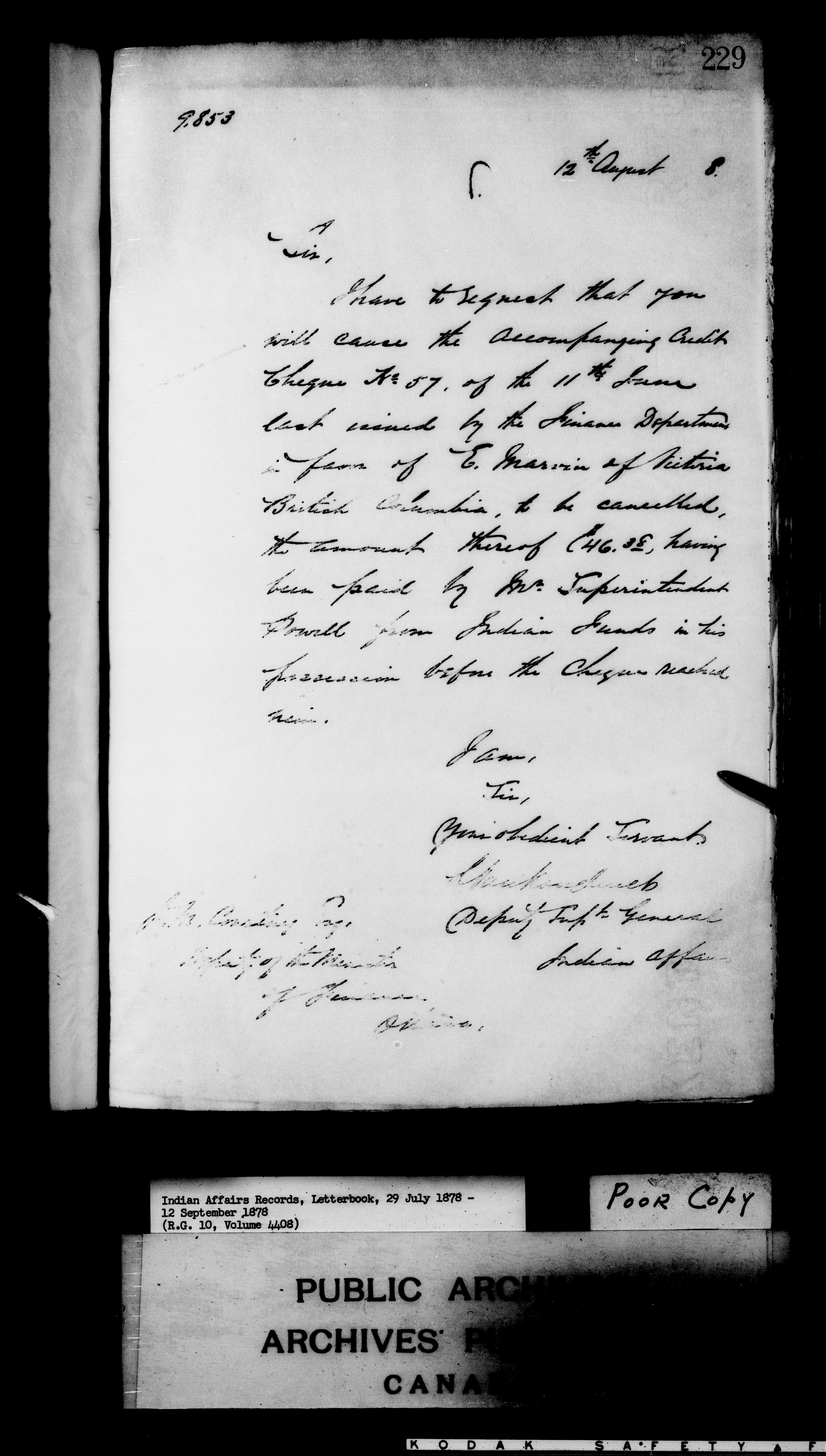 Department of Indian Affairs : Departmental letterbooks : C-7422