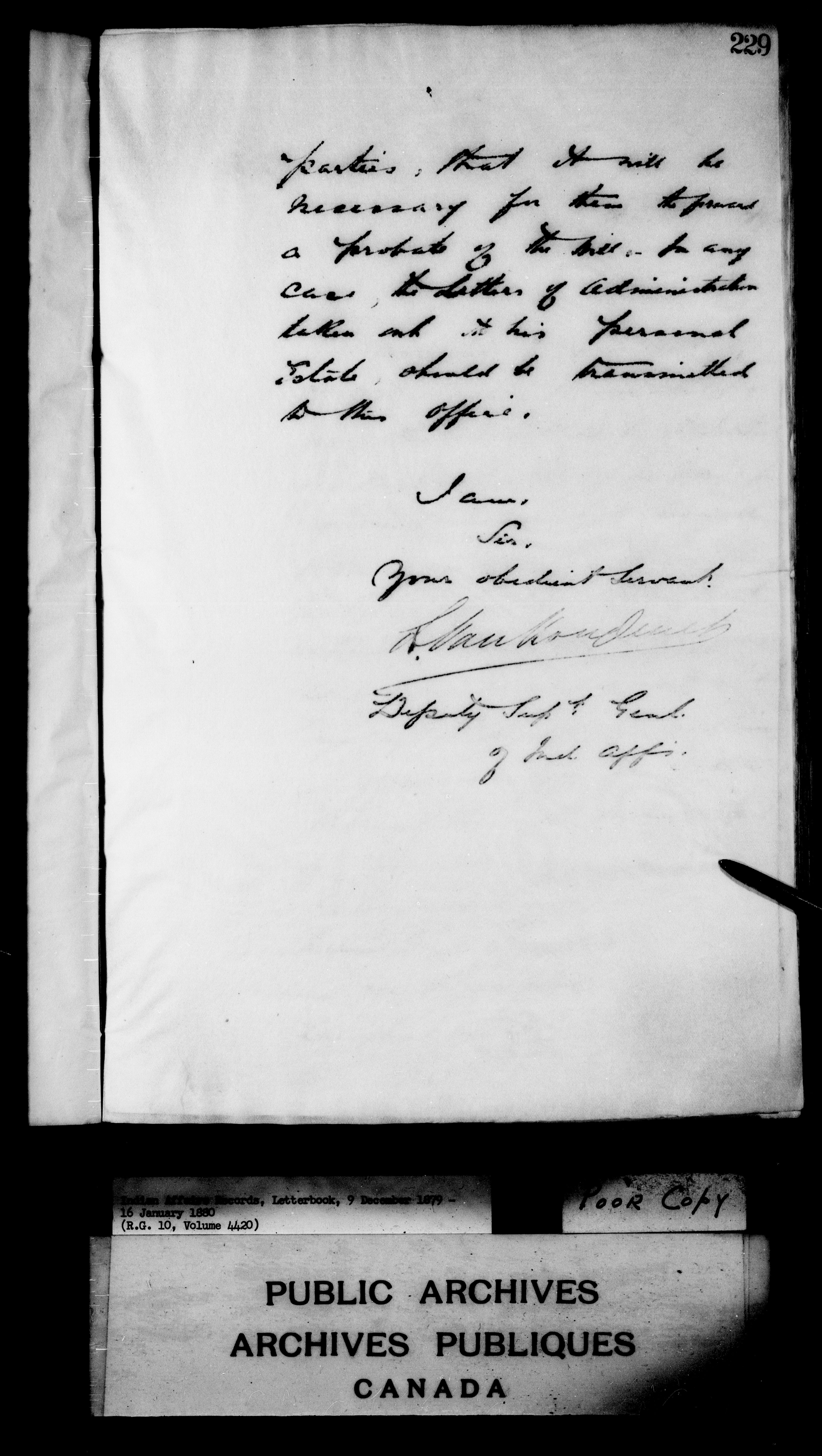 Department of Indian Affairs : Letterbooks of out-going correspondence relating to the administration of Indian Affairs in both eastern and western Canada, 1871-1920 - 7429
