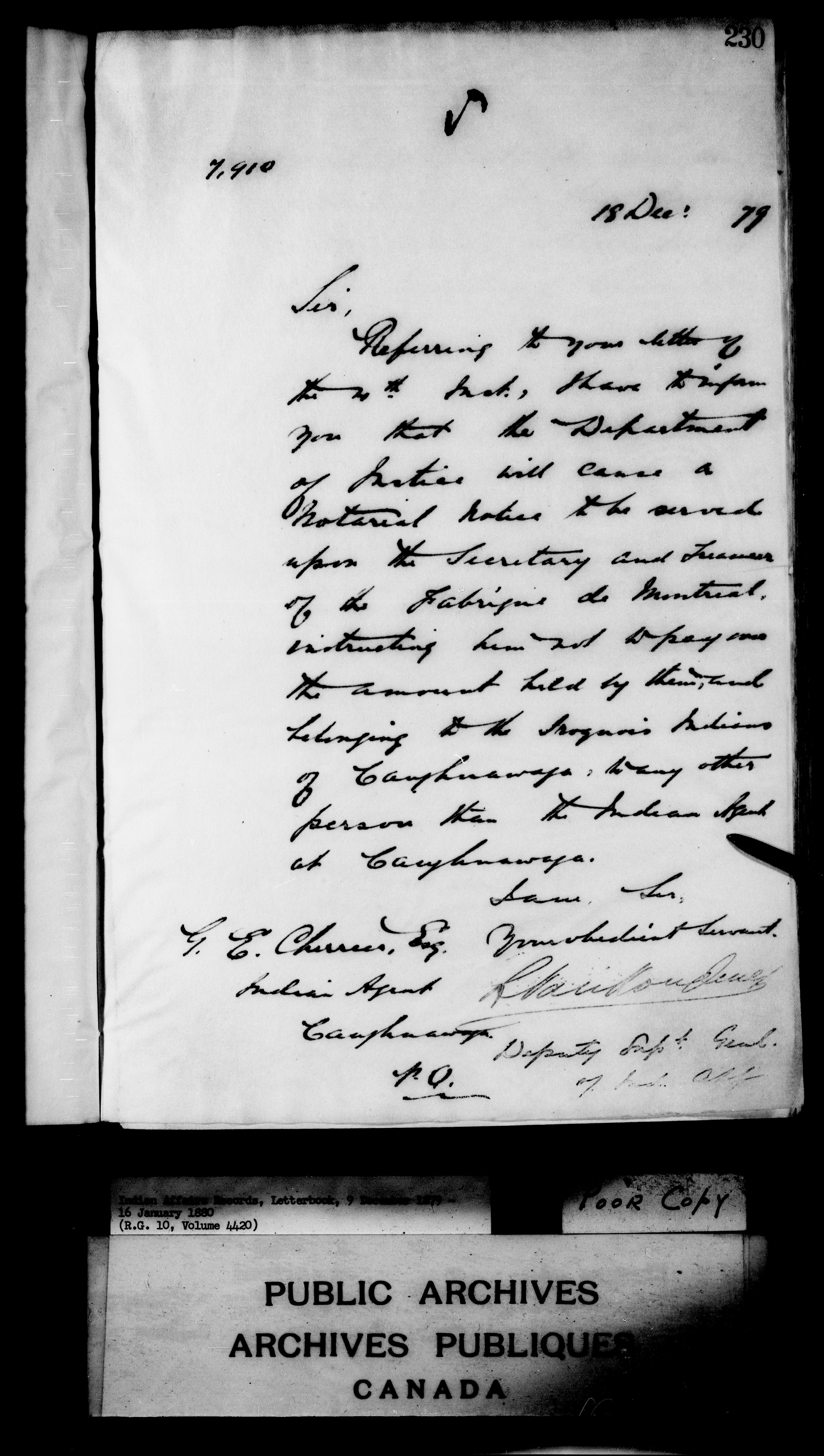 Department of Indian Affairs : Letterbooks of out-going correspondence relating to the administration of Indian Affairs in both eastern and western Canada, 1871-1920 - 7429