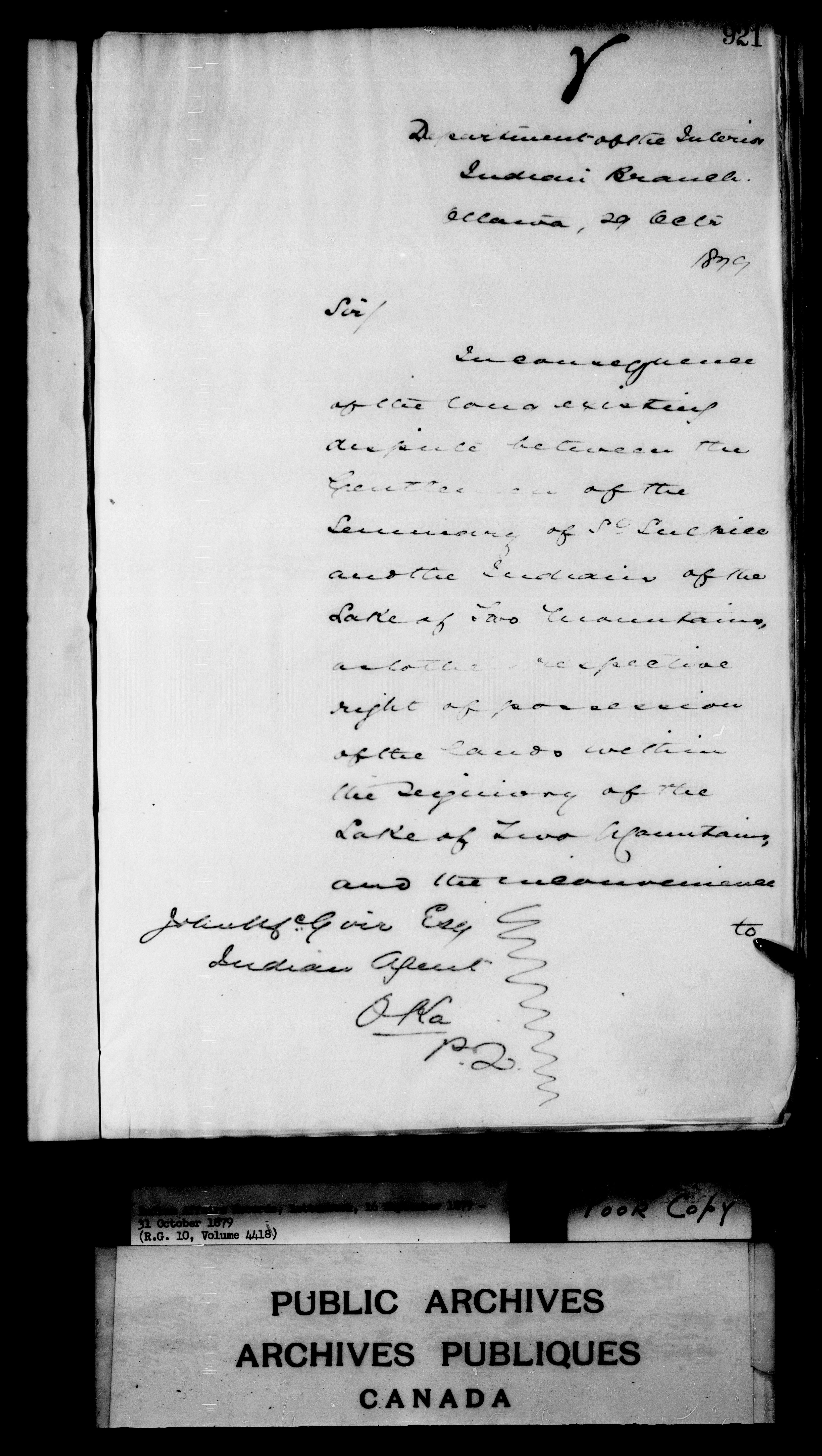 Department of Indian Affairs : Letterbooks of out-going correspondence relating to the administration of Indian Affairs in both eastern and western Canada, 1871-1920 - 7429