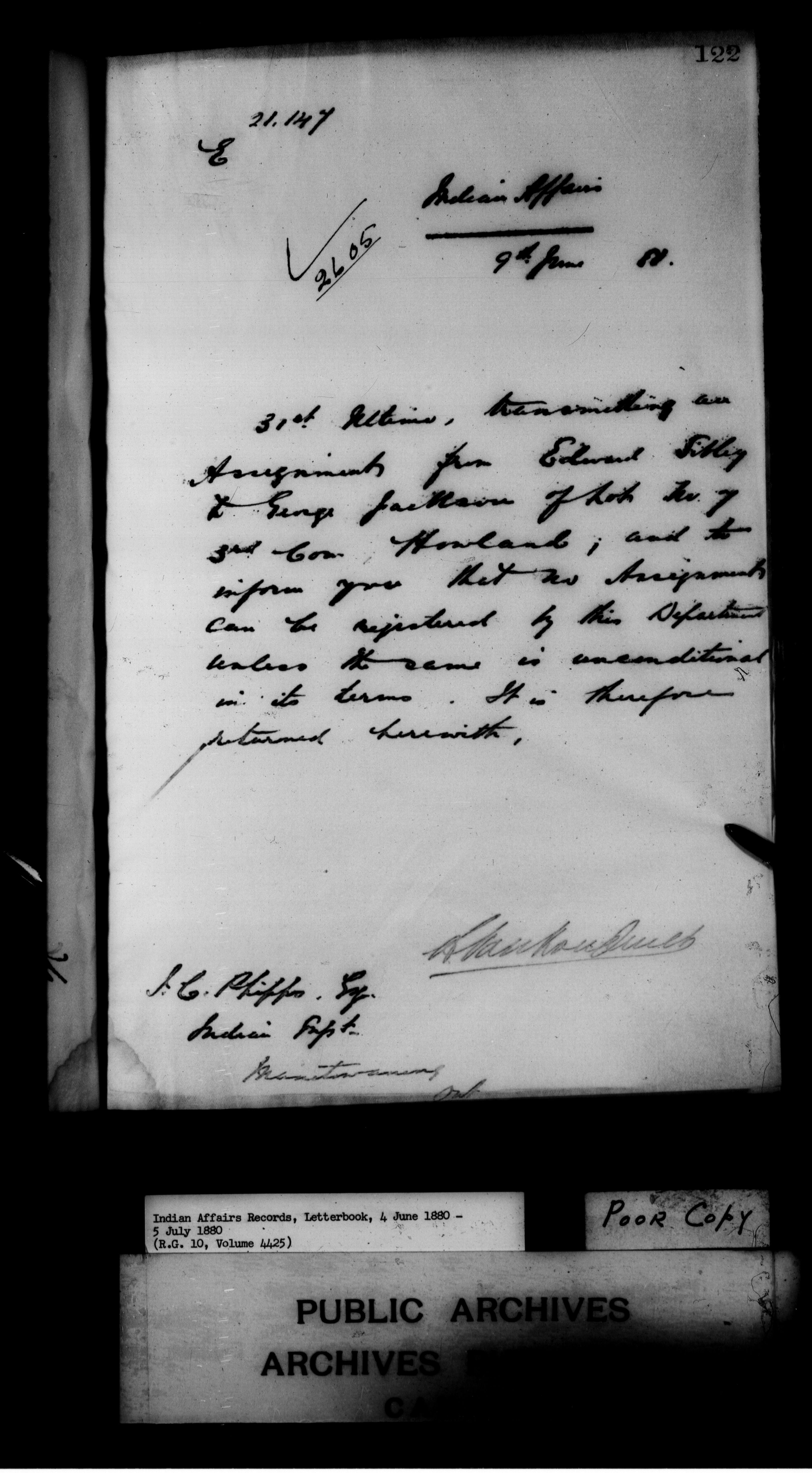 Department of Indian Affairs : Letterbooks of out-going correspondence relating to the administration of Indian Affairs in both eastern and western Canada, 1871-1920 - 7433
