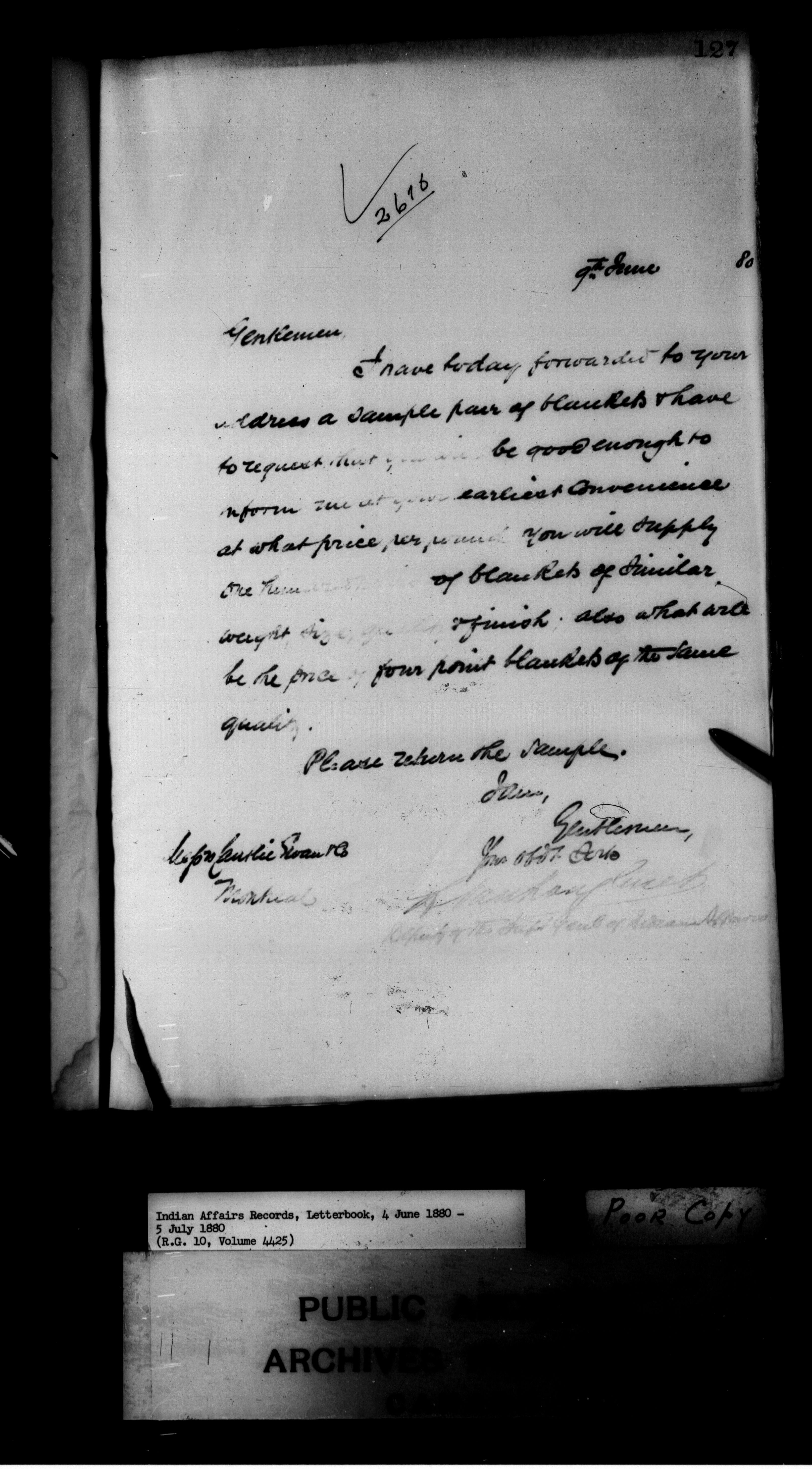 Department of Indian Affairs : Letterbooks of out-going correspondence relating to the administration of Indian Affairs in both eastern and western Canada, 1871-1920 - 7433