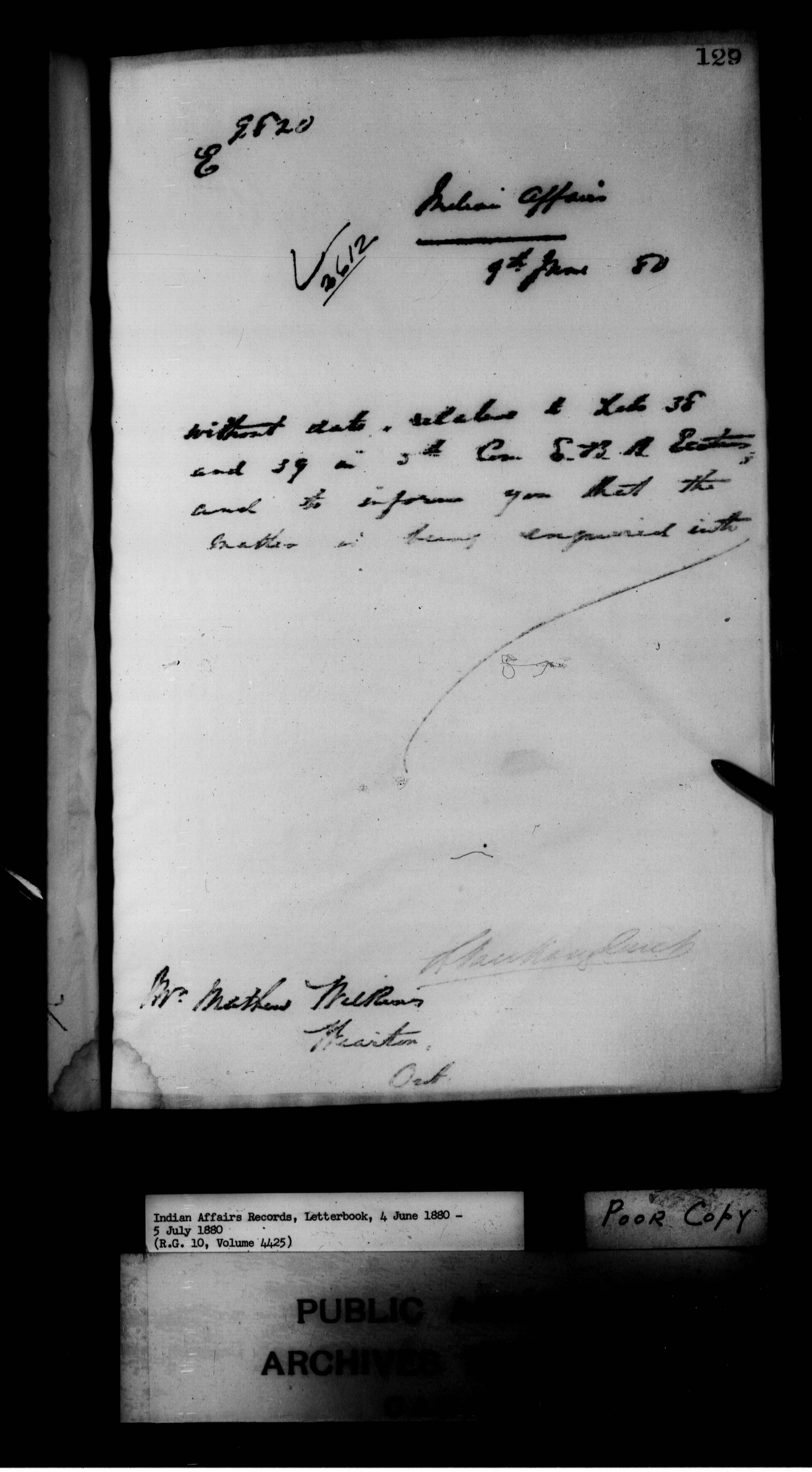 Department of Indian Affairs : Letterbooks of out-going correspondence relating to the administration of Indian Affairs in both eastern and western Canada, 1871-1920 - 7433