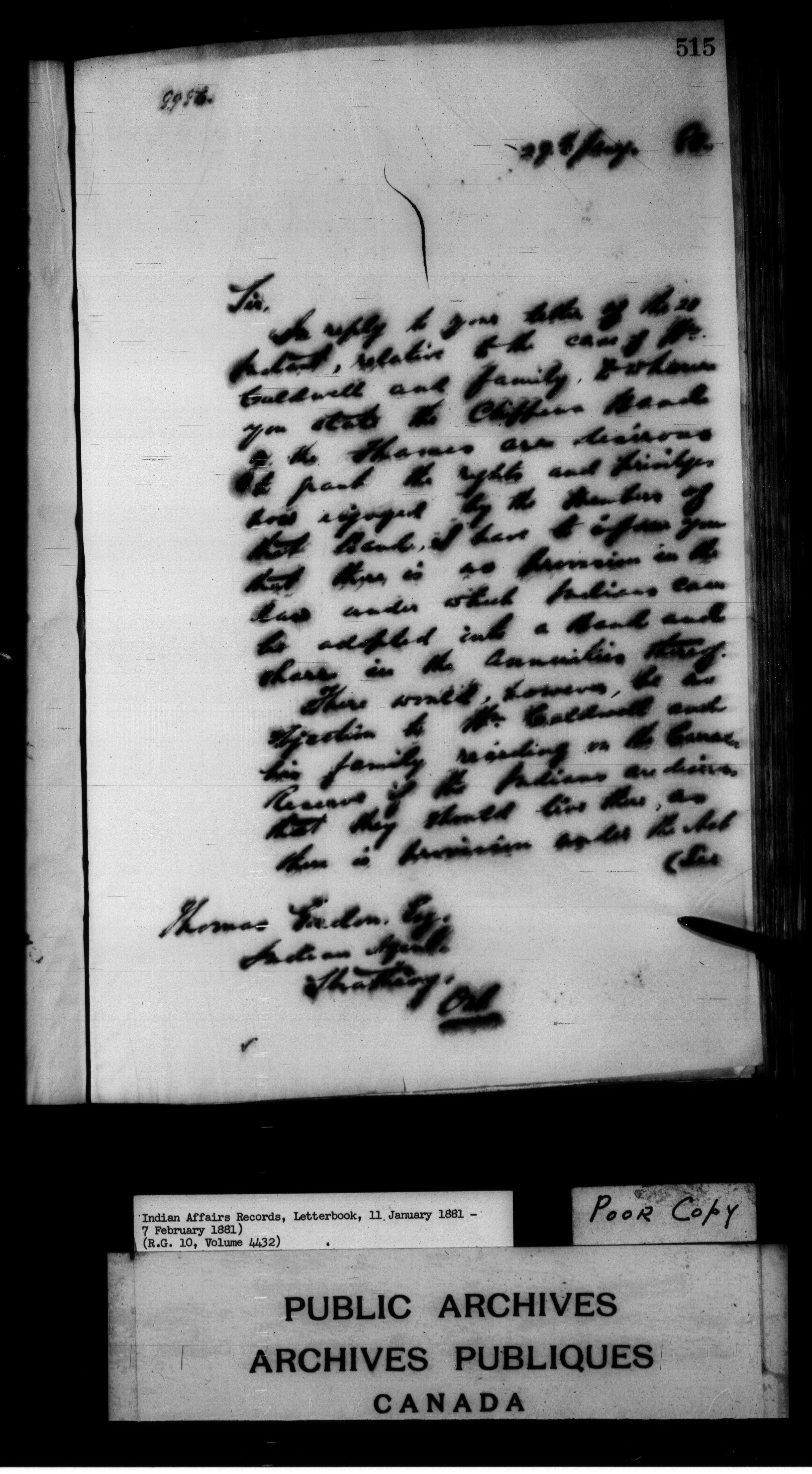 Department of Indian Affairs : Letterbooks of out-going correspondence relating to the administration of Indian Affairs in both eastern and western Canada, 1871-1920 - 7436