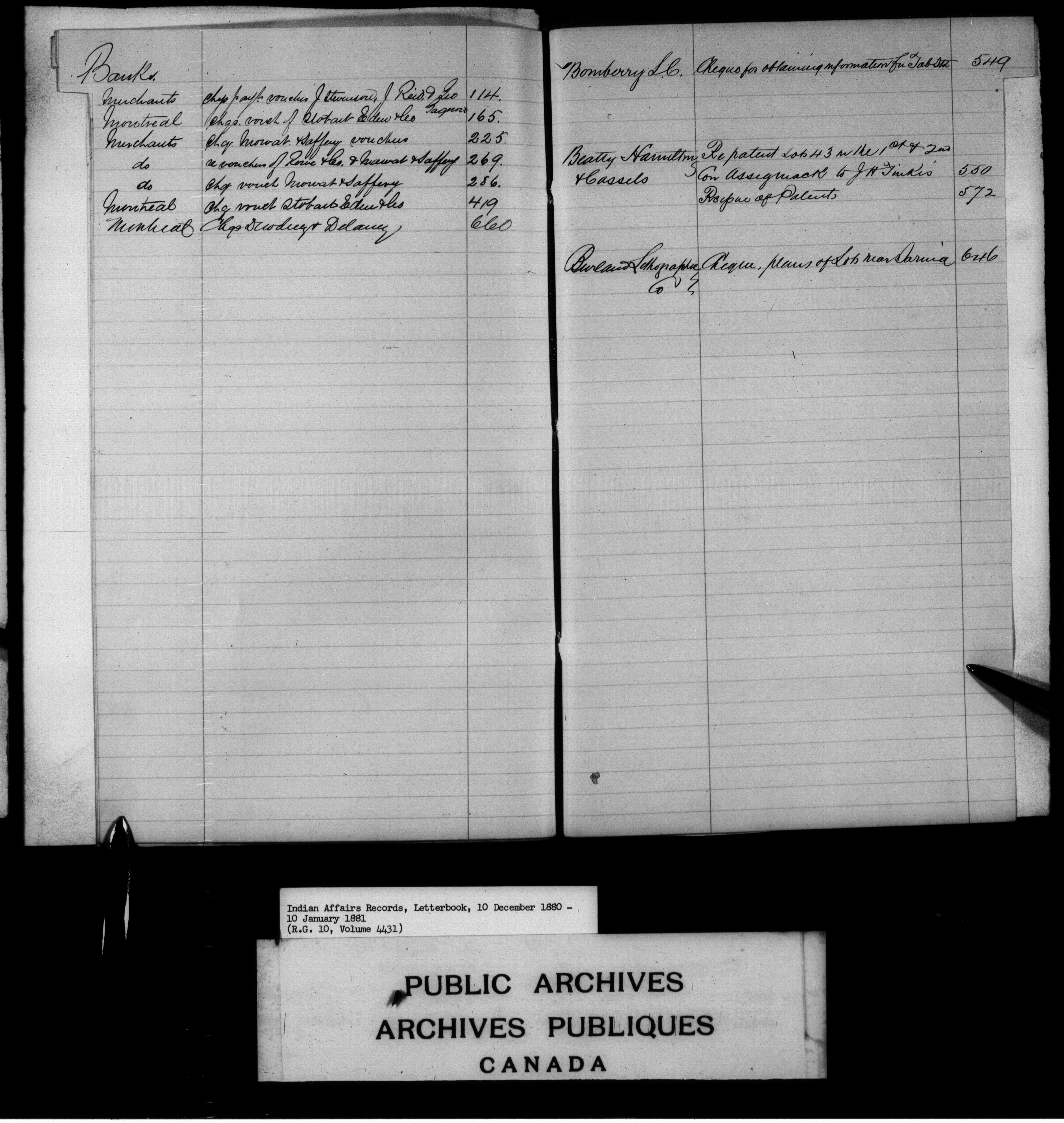 Department of Indian Affairs : Letterbooks of out-going correspondence relating to the administration of Indian Affairs in both eastern and western Canada, 1871-1920 - 7436