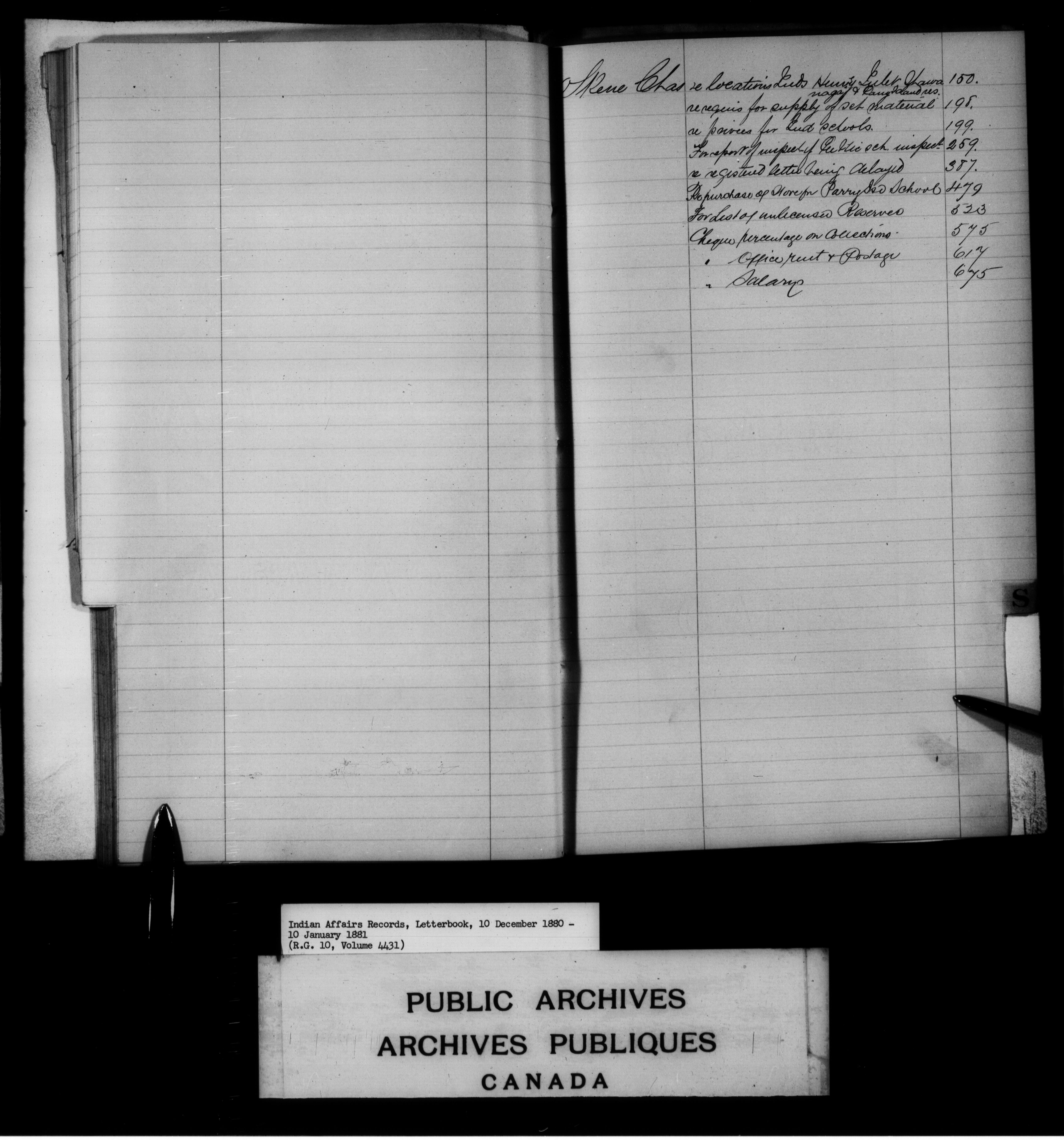 Department of Indian Affairs : Letterbooks of out-going correspondence relating to the administration of Indian Affairs in both eastern and western Canada, 1871-1920 - 7436