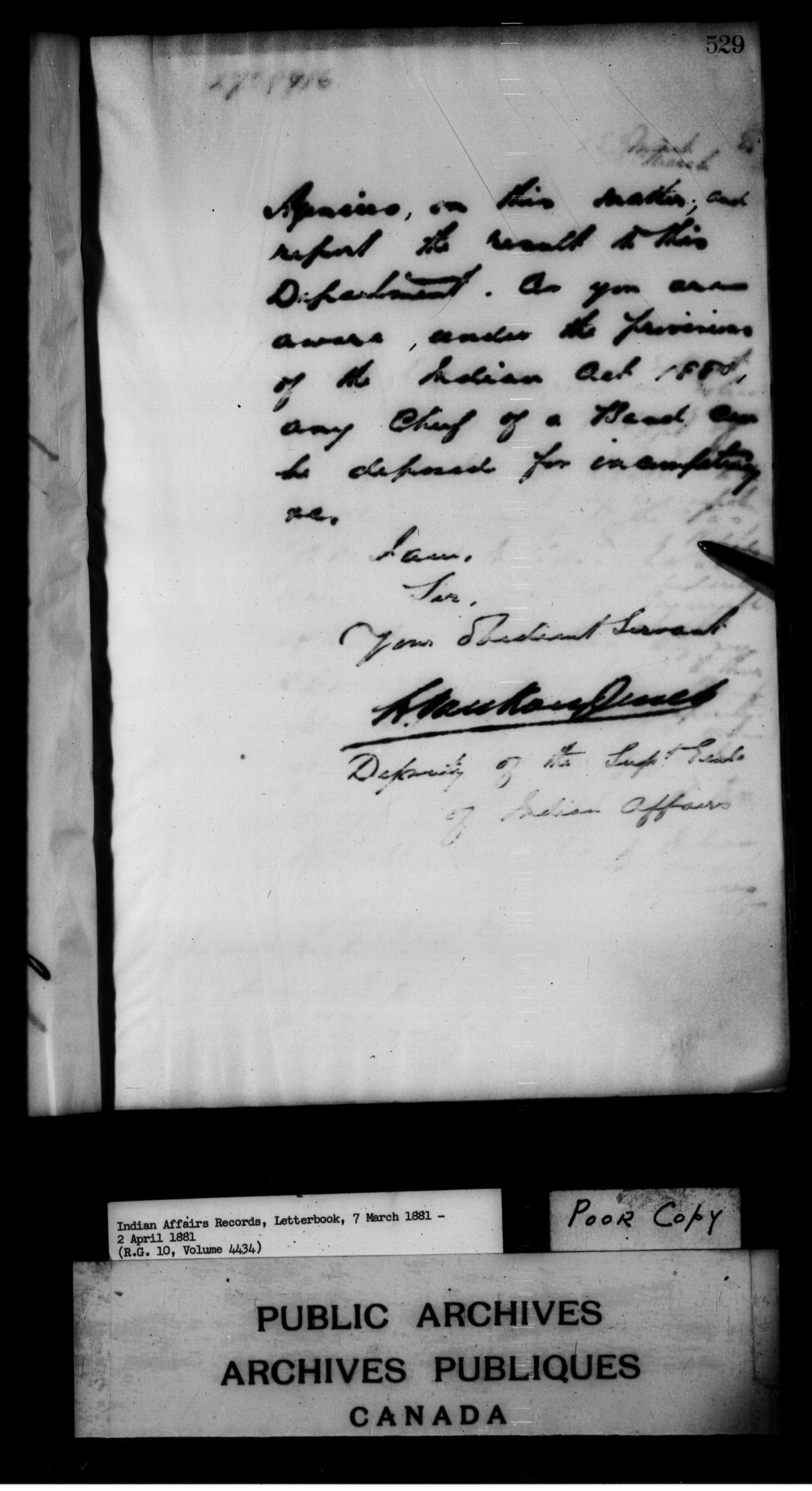 Department of Indian Affairs : Letterbooks of out-going correspondence relating to the administration of Indian Affairs in both eastern and western Canada, 1871-1920 - 7437