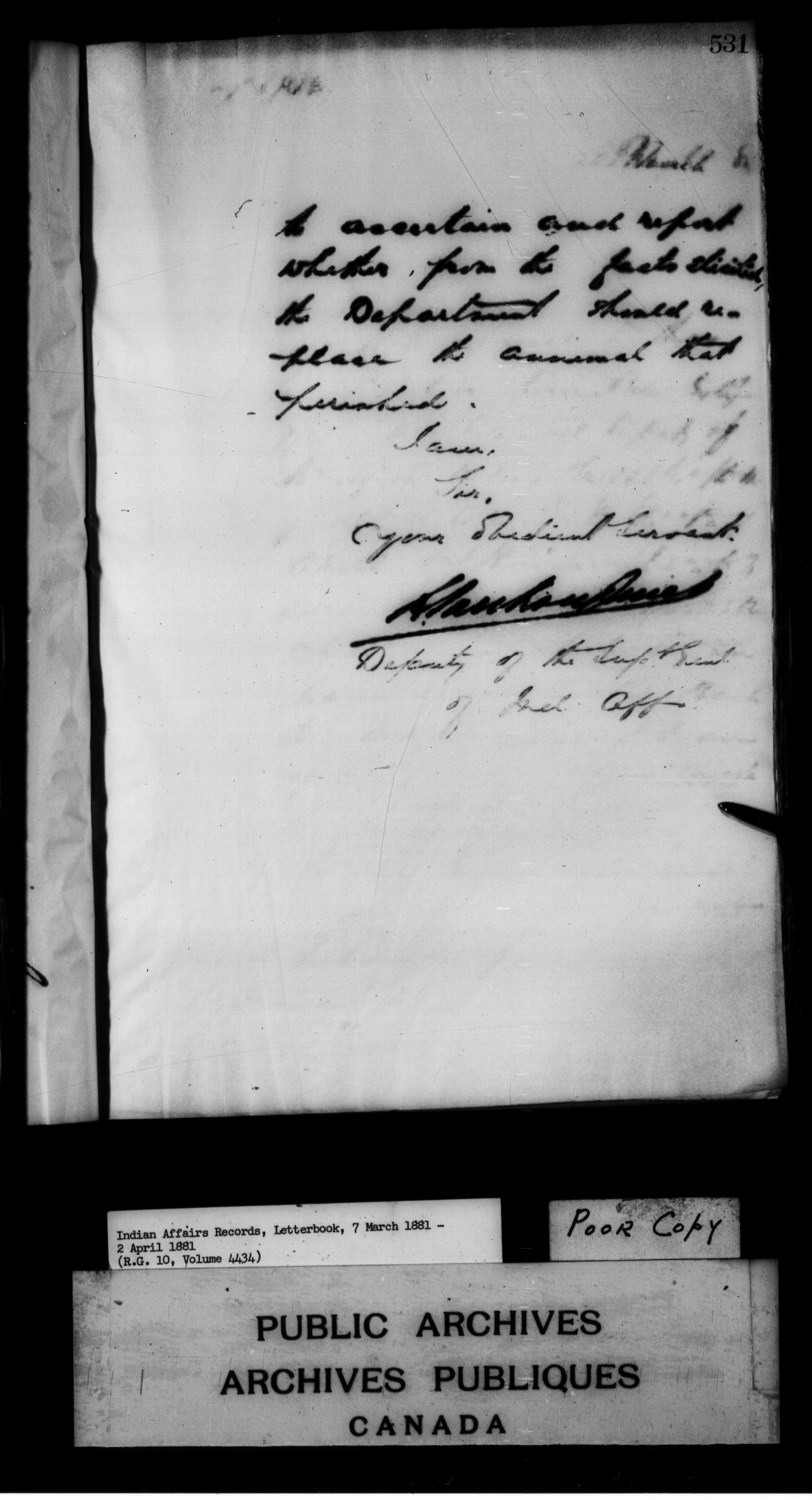 Department of Indian Affairs : Letterbooks of out-going correspondence relating to the administration of Indian Affairs in both eastern and western Canada, 1871-1920 - 7437