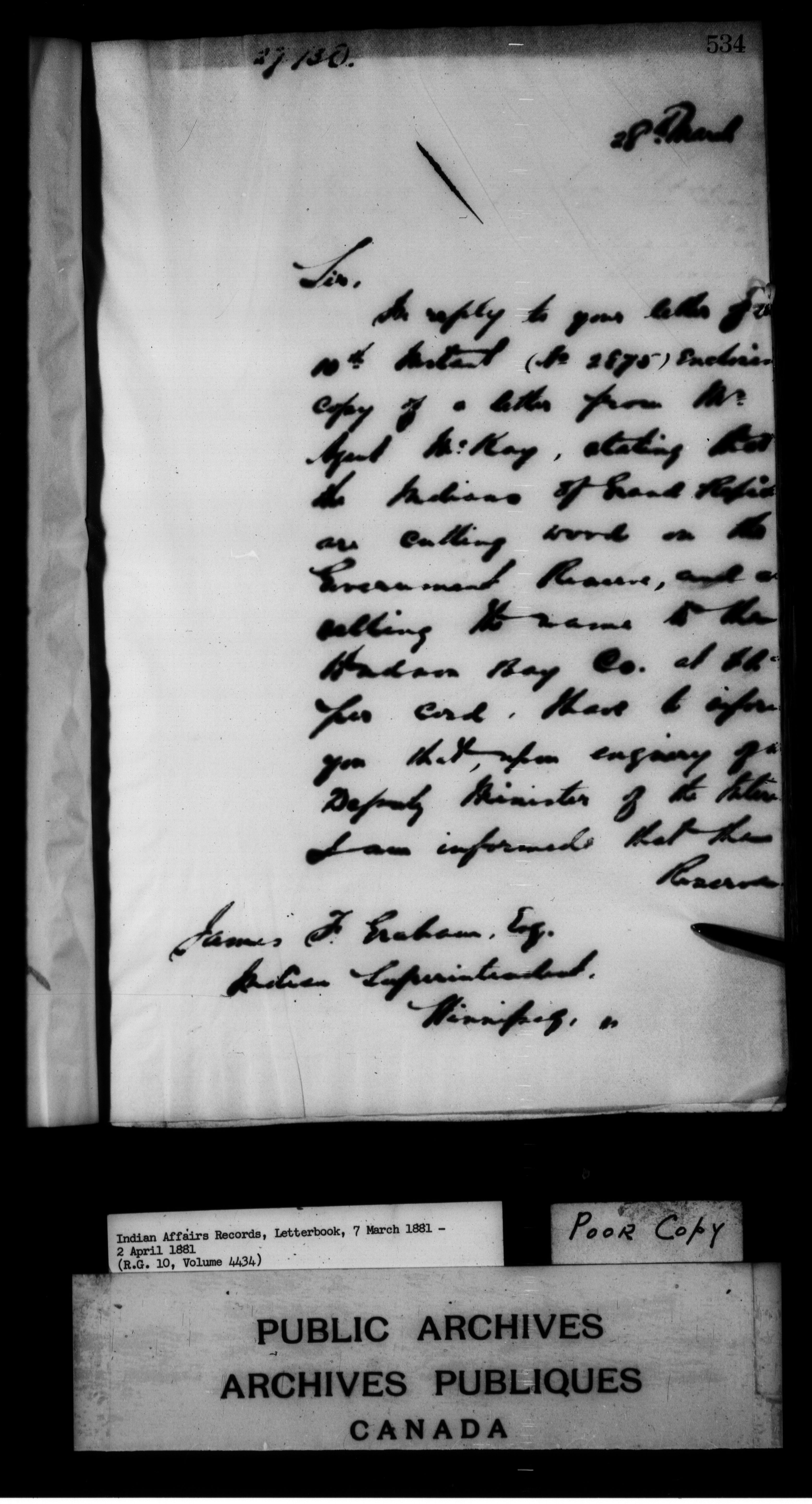 Department of Indian Affairs : Letterbooks of out-going correspondence relating to the administration of Indian Affairs in both eastern and western Canada, 1871-1920 - 7437