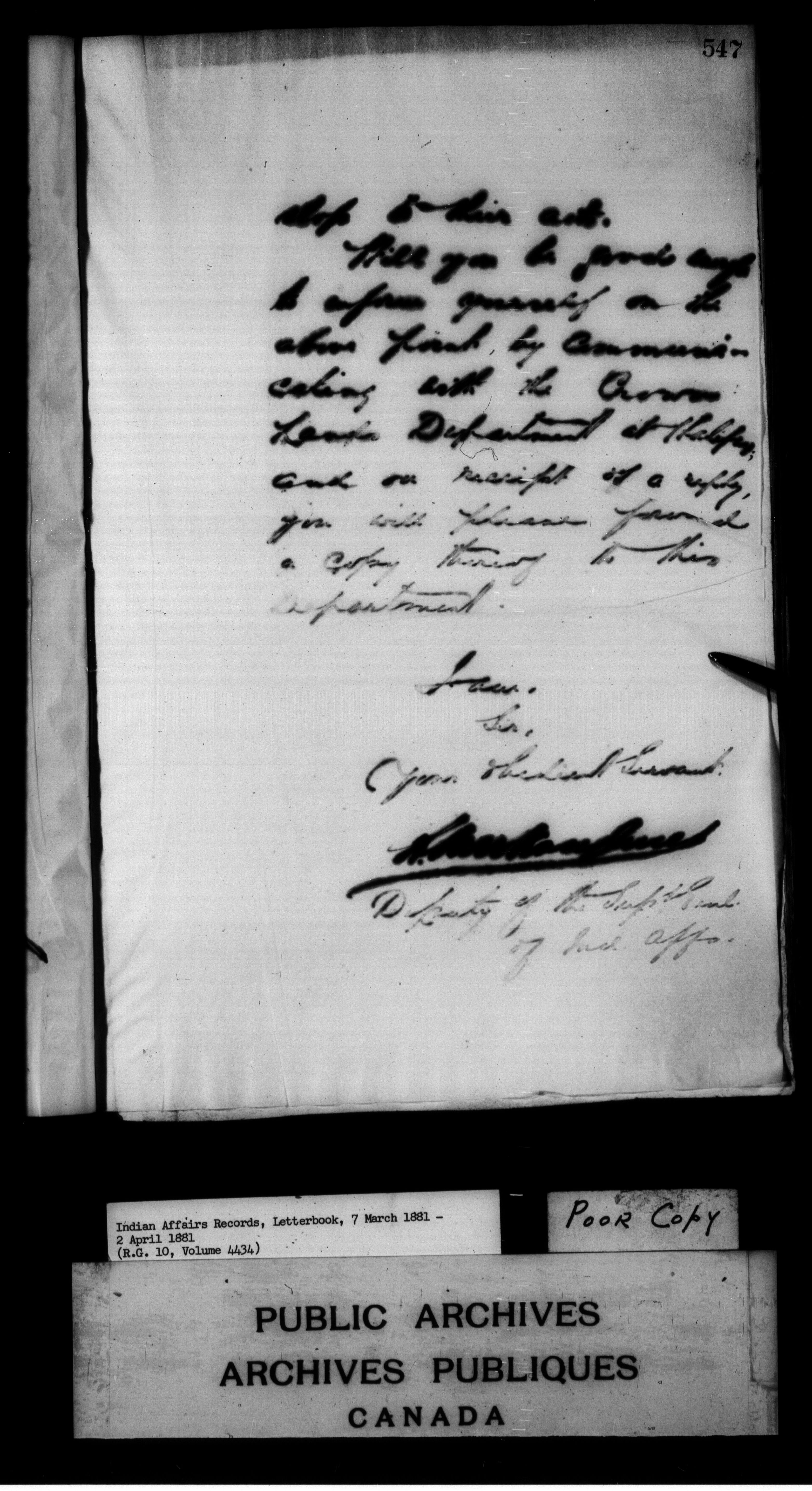 Department of Indian Affairs : Letterbooks of out-going correspondence relating to the administration of Indian Affairs in both eastern and western Canada, 1871-1920 - 7437