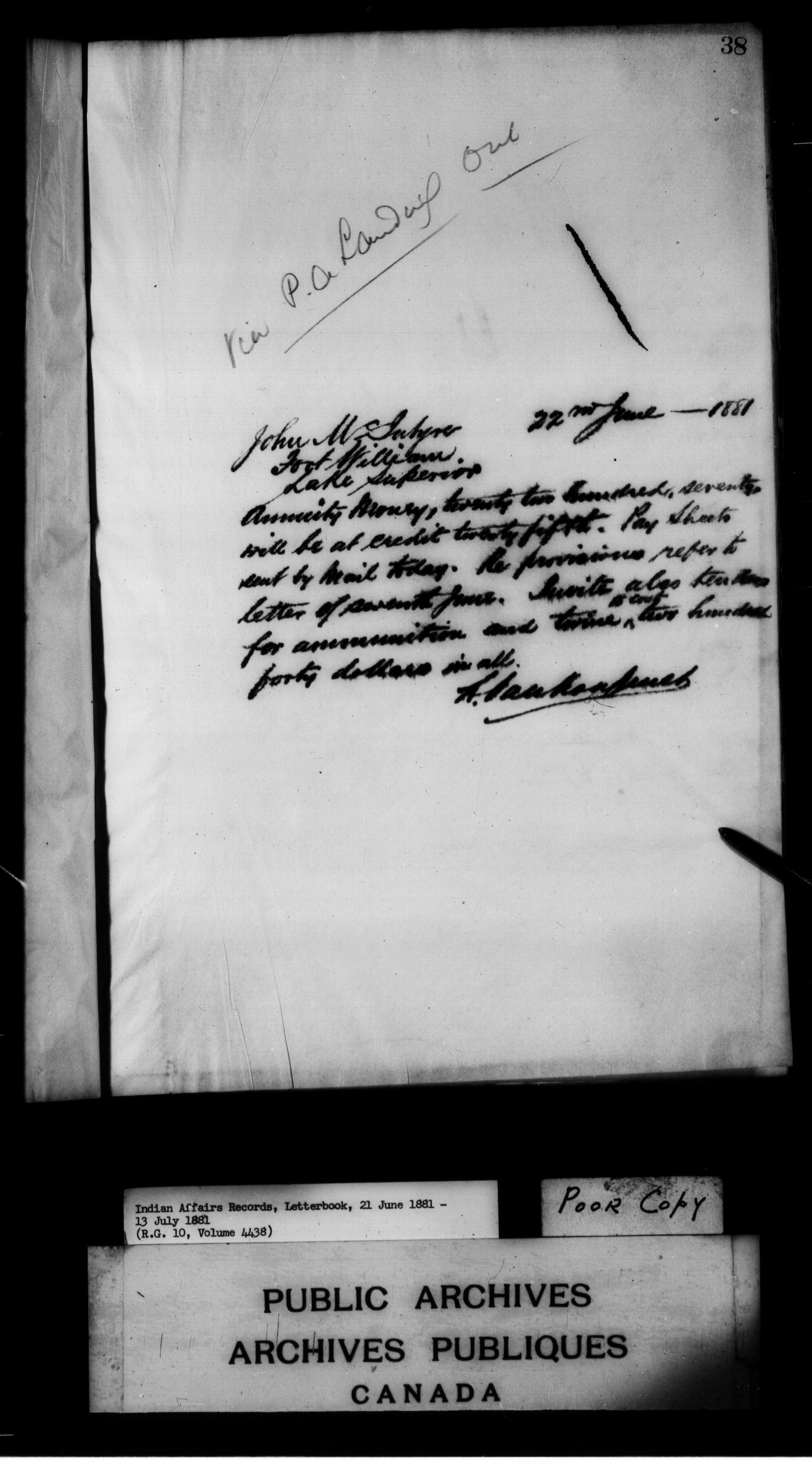 Department of Indian Affairs : Departmental letterbooks : C-7439