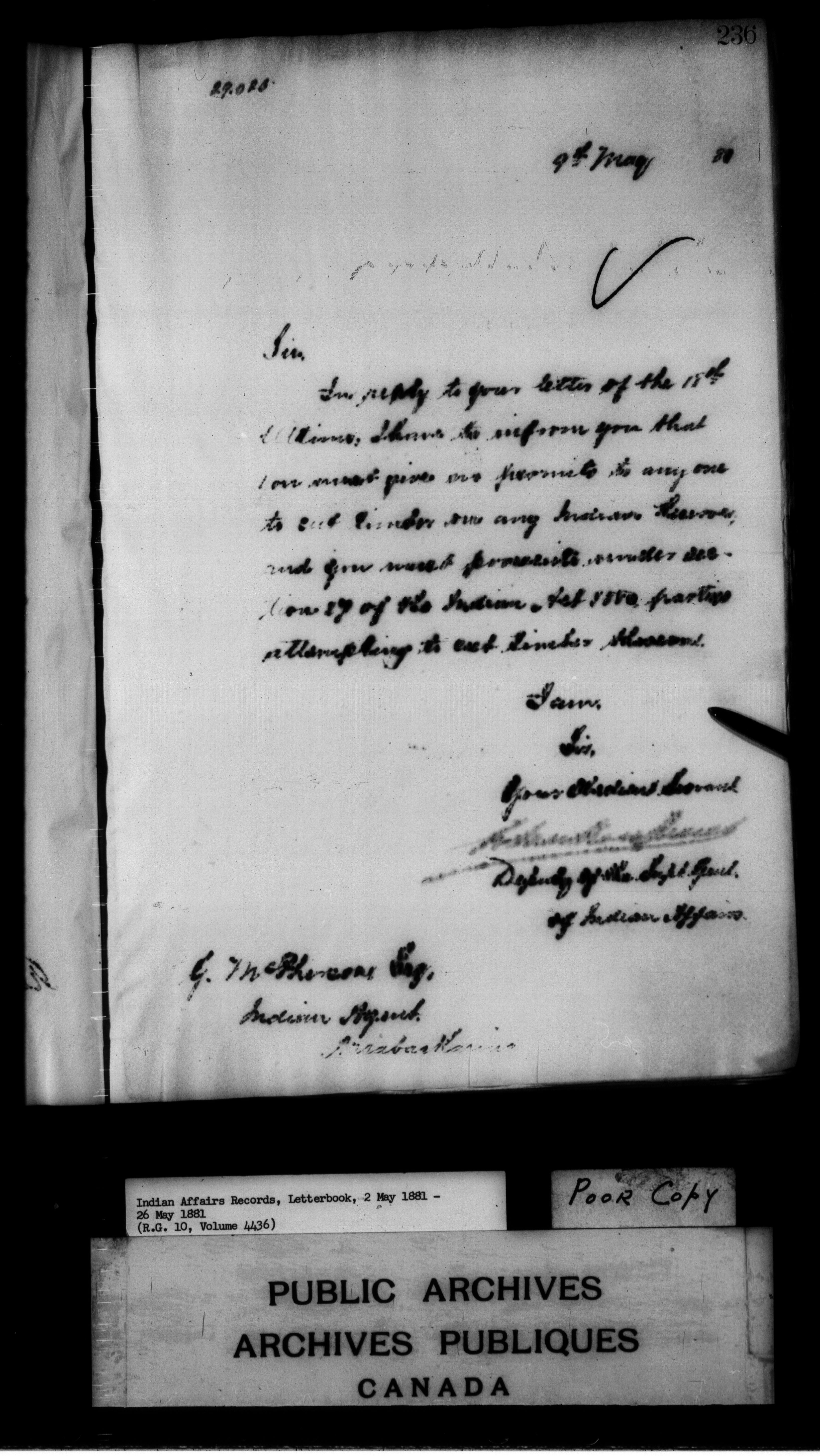 Department of Indian Affairs : Letterbooks of out-going correspondence relating to the administration of Indian Affairs in both eastern and western Canada, 1871-1920 - 7439