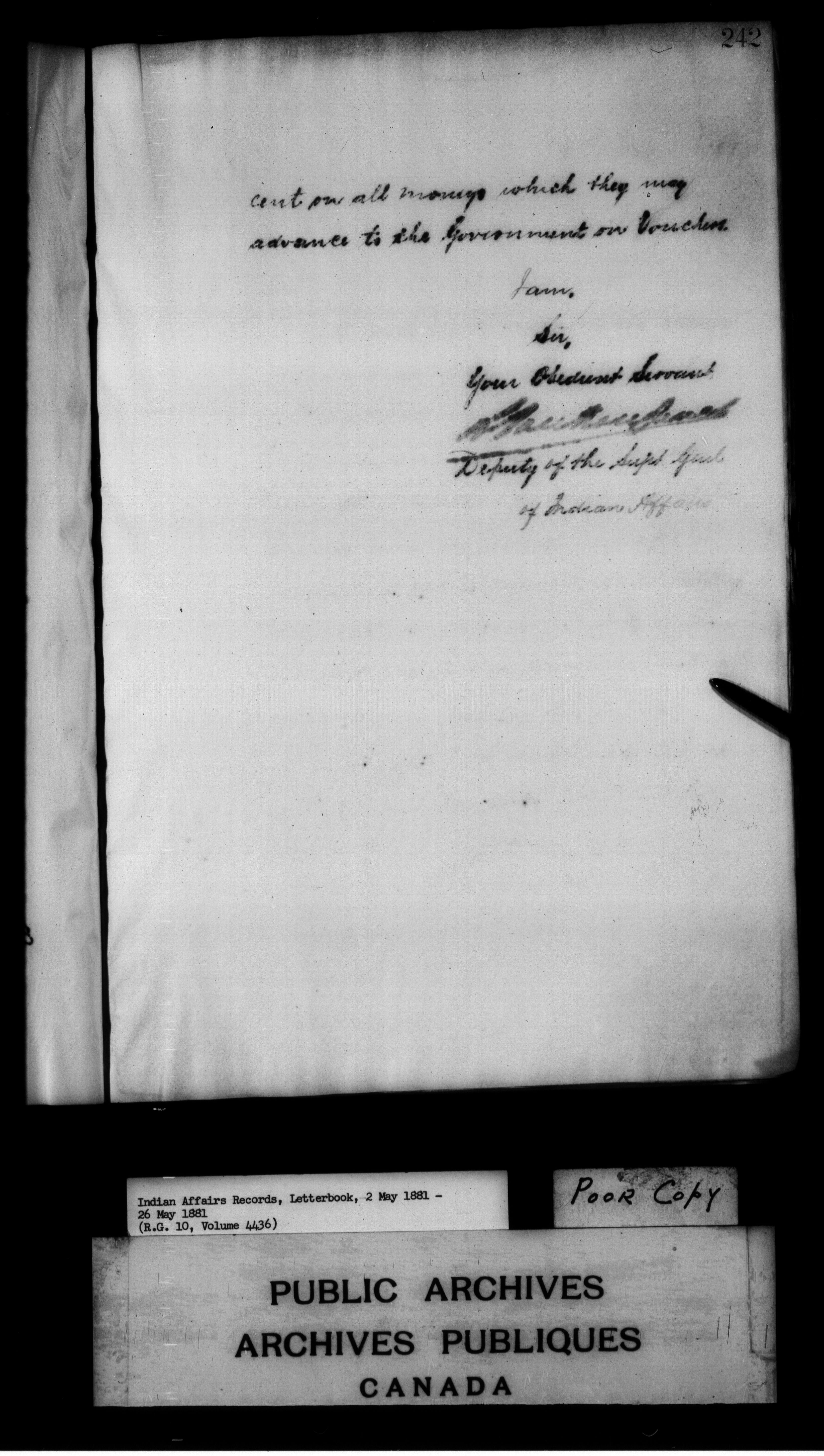 Department of Indian Affairs : Letterbooks of out-going correspondence relating to the administration of Indian Affairs in both eastern and western Canada, 1871-1920 - 7439
