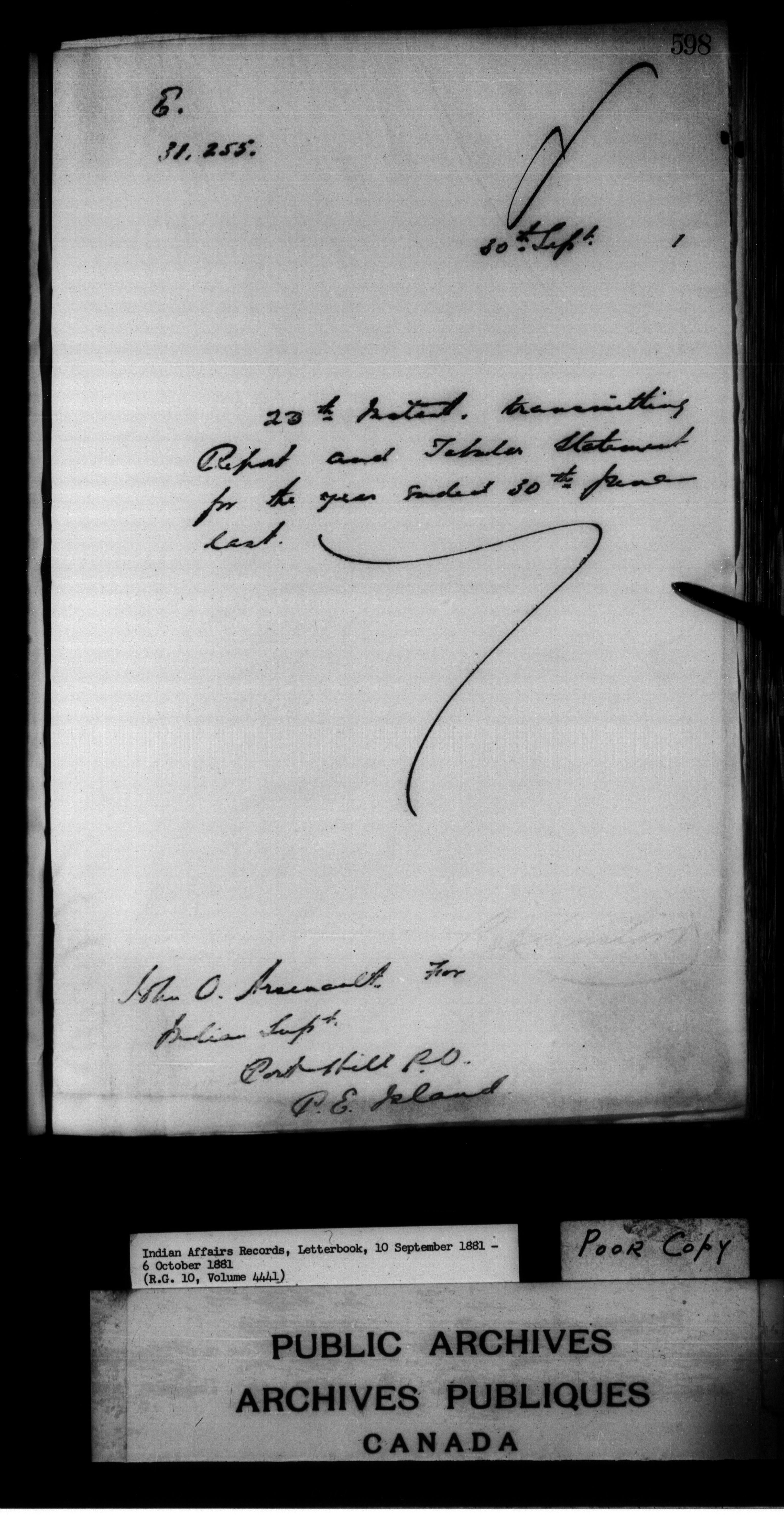 Department of Indian Affairs : Letterbooks of out-going correspondence relating to the administration of Indian Affairs in both eastern and western Canada, 1871-1920 - 7441